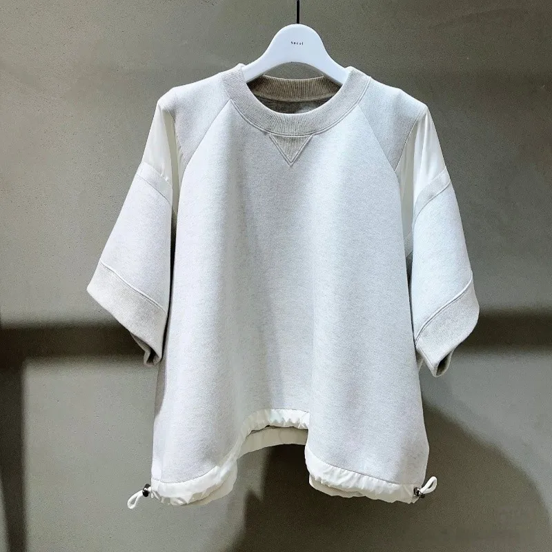 25 Inizio autunno nuovo colore solido contrasto impiombato maglietta a maniche corte allentato casual mezza manica Top y2k top