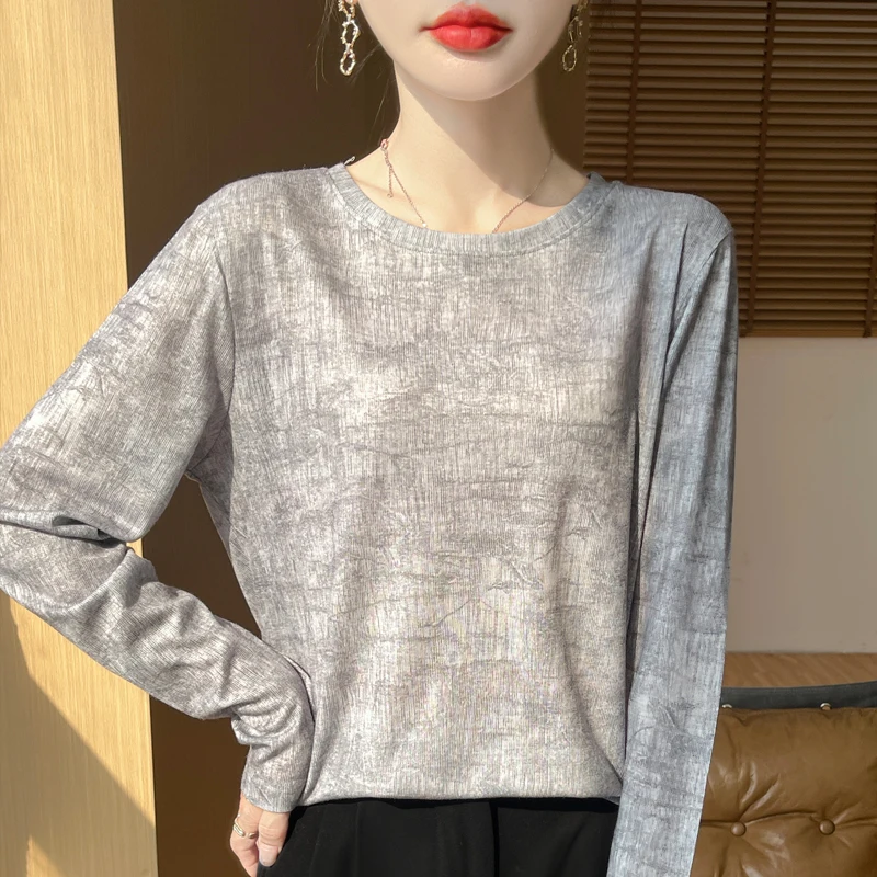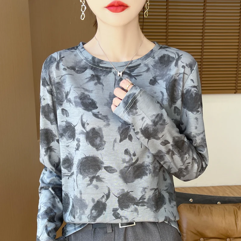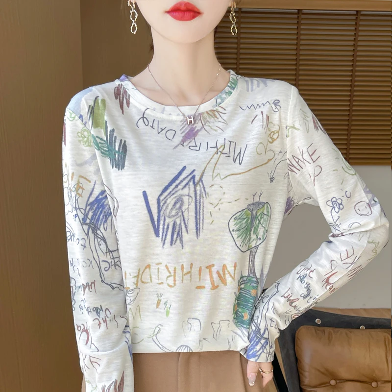 T-shirt a maniche corte lavorata a maglia di seta sottile nuova estate 2024 T-shirt stampata allentata in lana senza maniche da donna