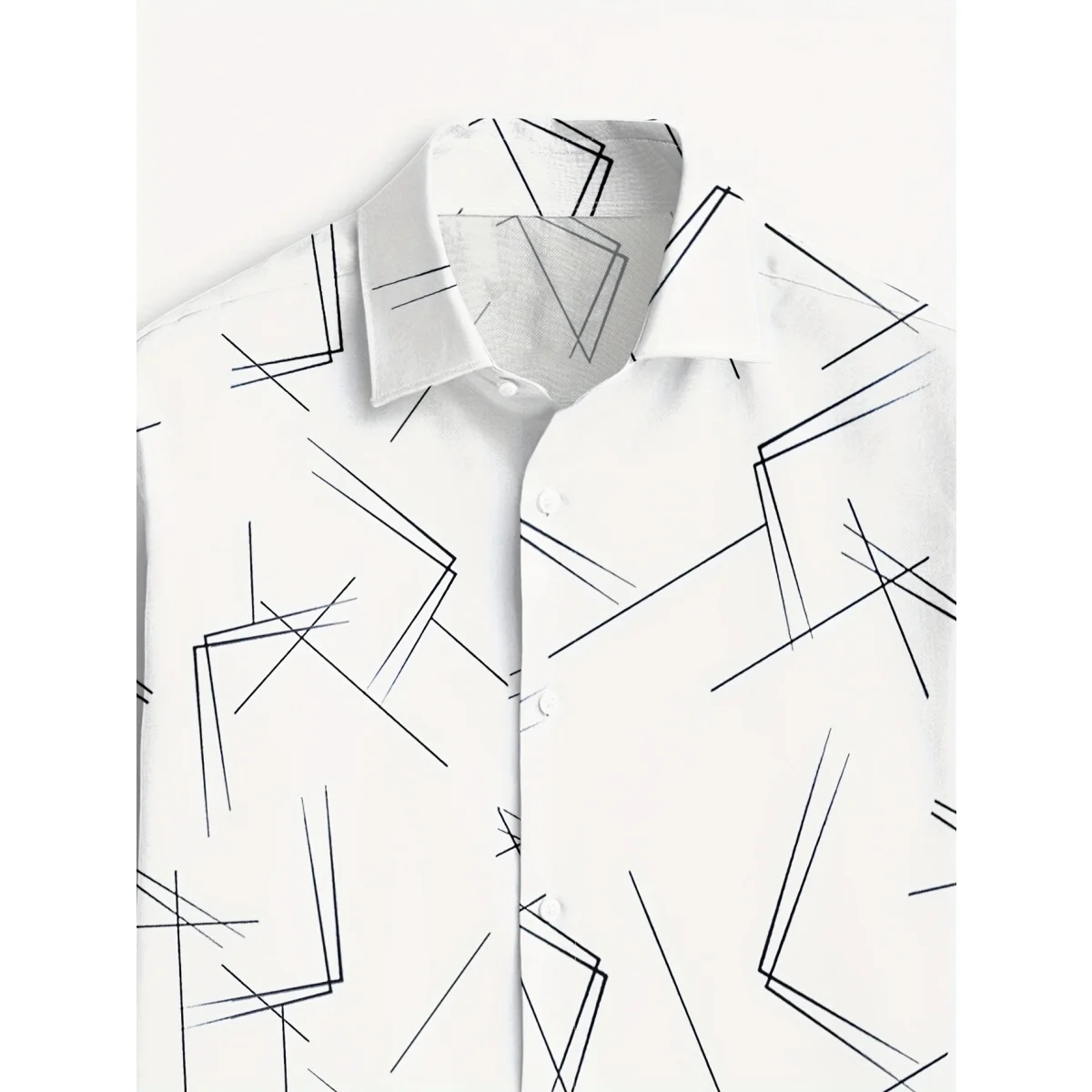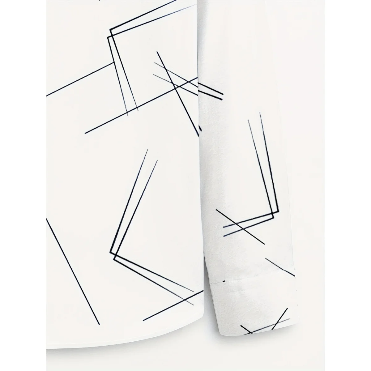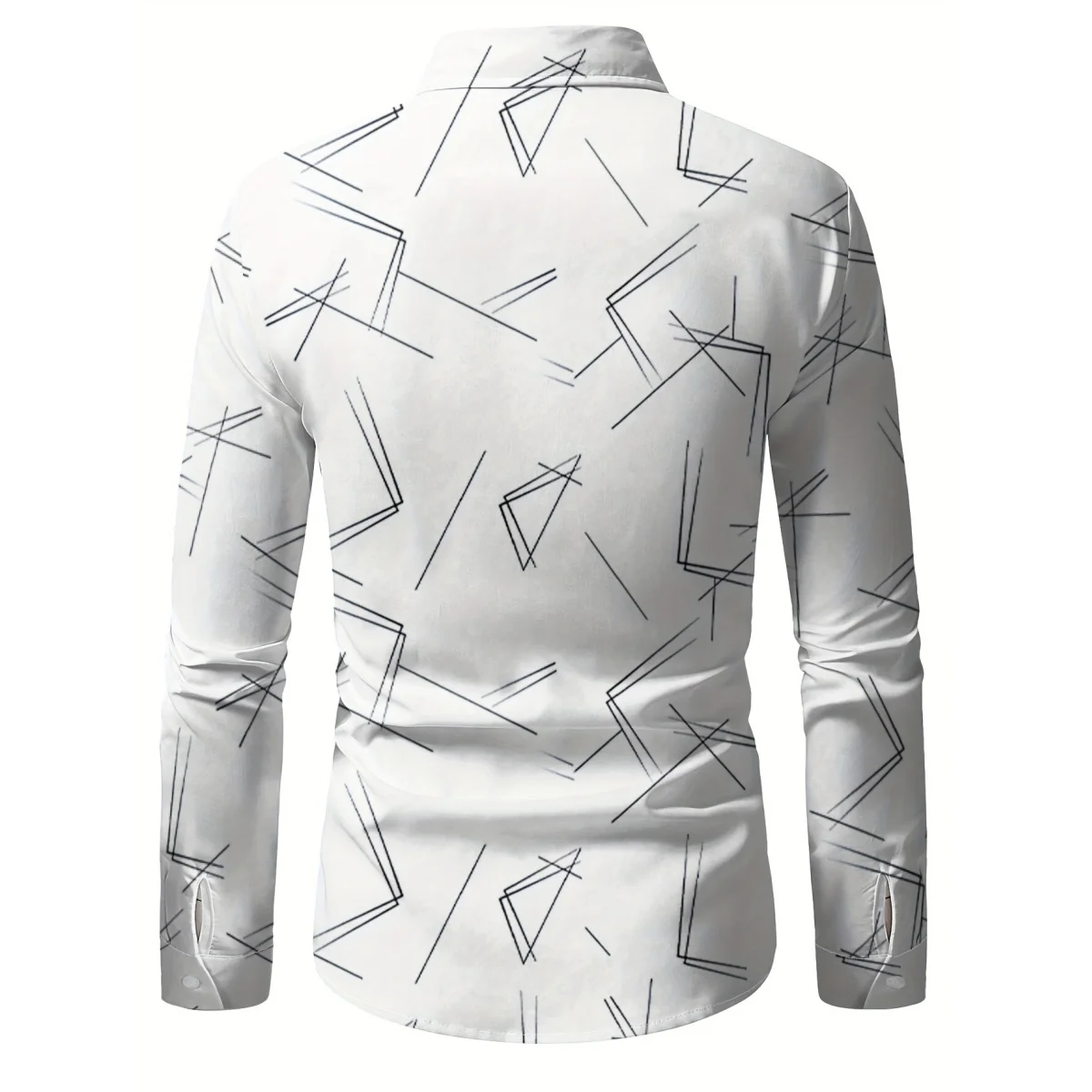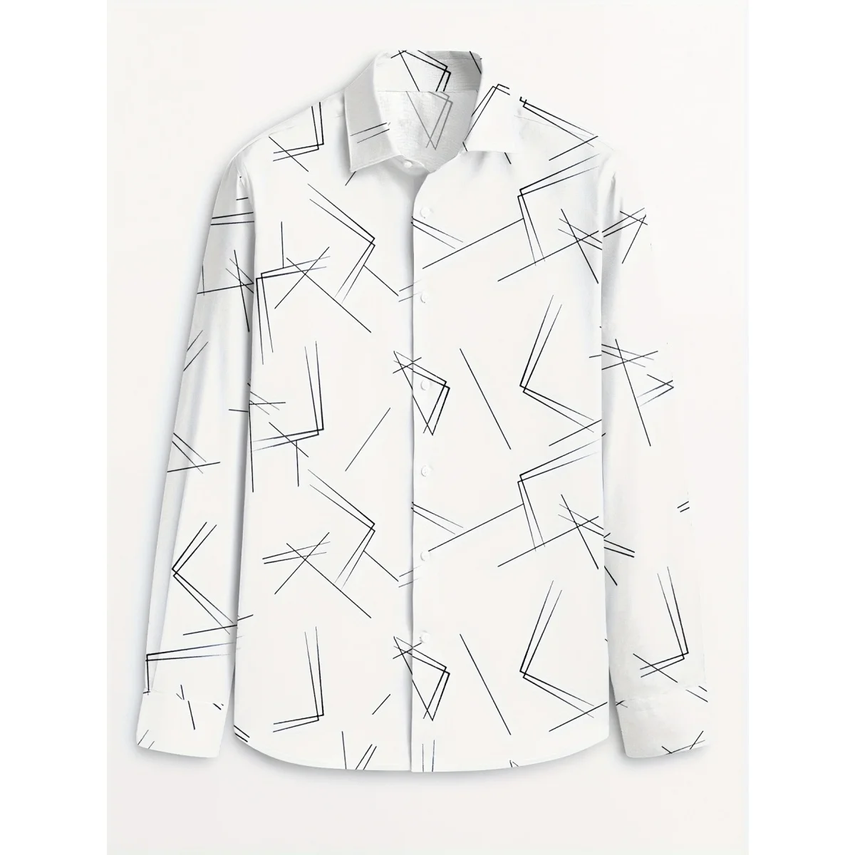 Camicia a maniche lunghe con stampa linea geometrica 3D alla moda da uomo Camicia abbottonata da uomo Camicia bianca da uomo moda casual Camicia con risvolto Top