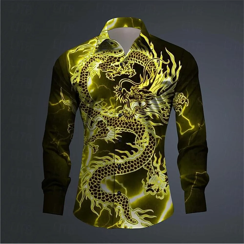 Camicia abbottonata arrotolabile con stampa drago stampata in 3D da uomo Hawaii Abbigliamento da strada a maniche lunghe da strada all'aperto Moda casual stile spiaggia
