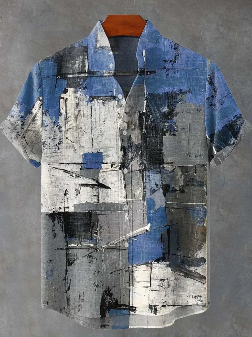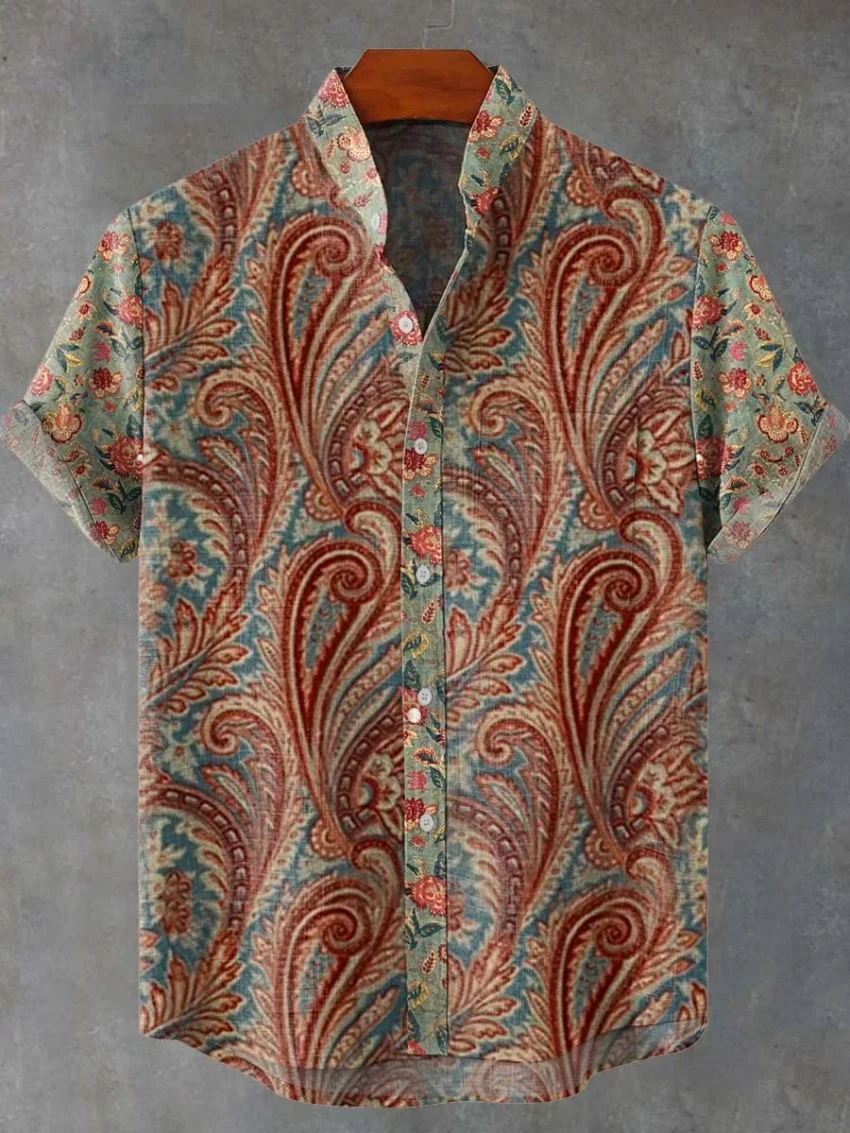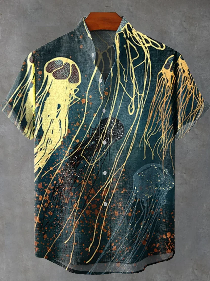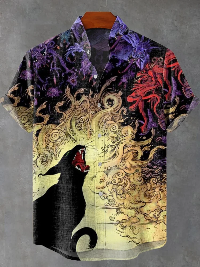 Nuova camicia a maniche corte da uomo con motivo naturale stampato in lino 3D Camicia hawaiana estiva per abbigliamento da strada Hip Hop