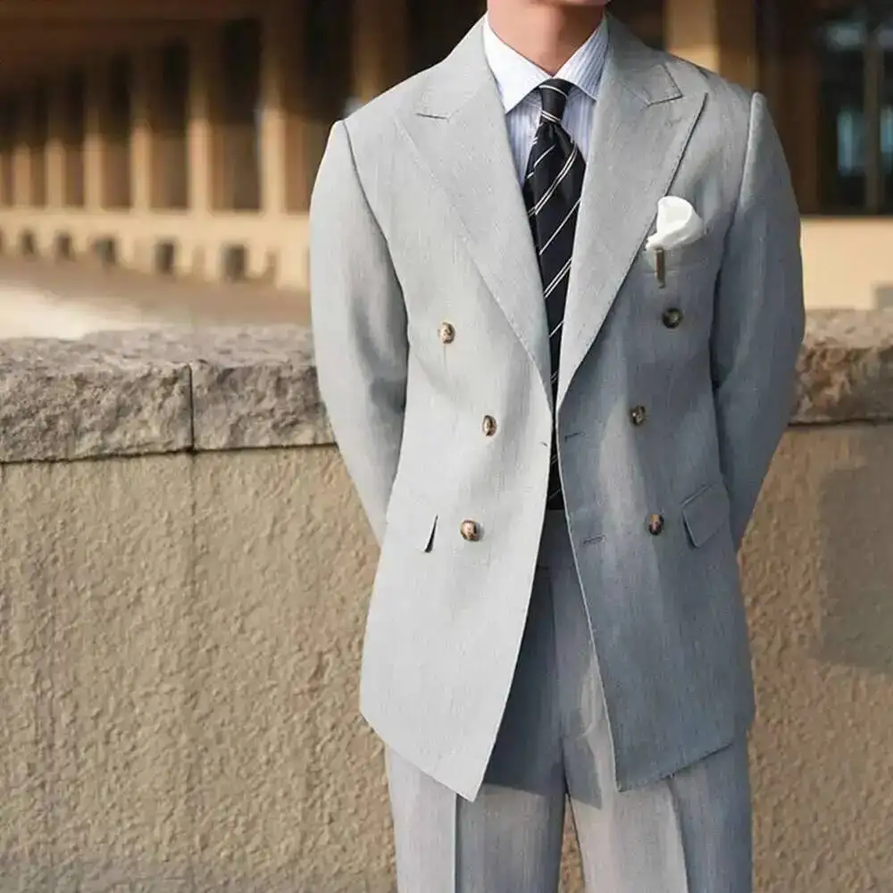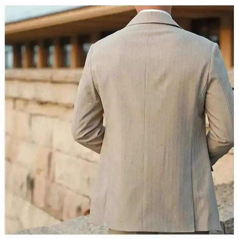 Abito a righe uomo Versatile moda uomo doppio petto cappotto con risvolto italiano abito formale da sposo da uomo d'affari smoking