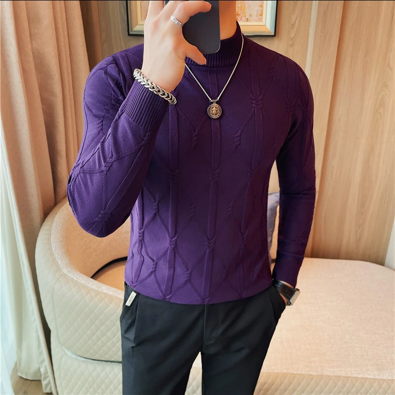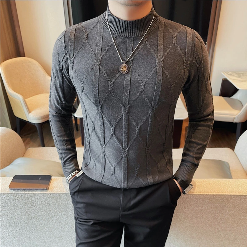 Maglione a collo alto mezzo jacquard coreano autunno inverno per uomo maglione lavorato a maglia casual slim fit moda pullover lavorati a maglia caldi