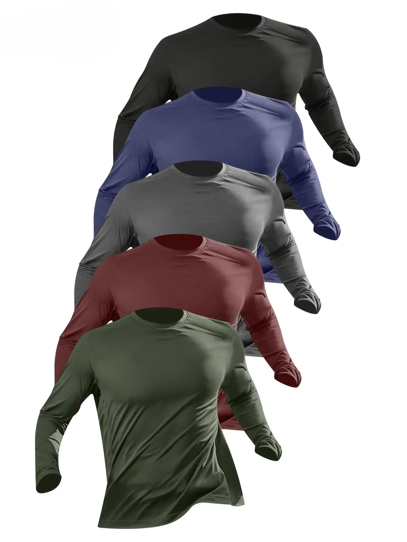 T-shirt da uomo a maniche lunghe girocollo in tinta unita da 5 pezzi, design versatile, comoda e alla moda