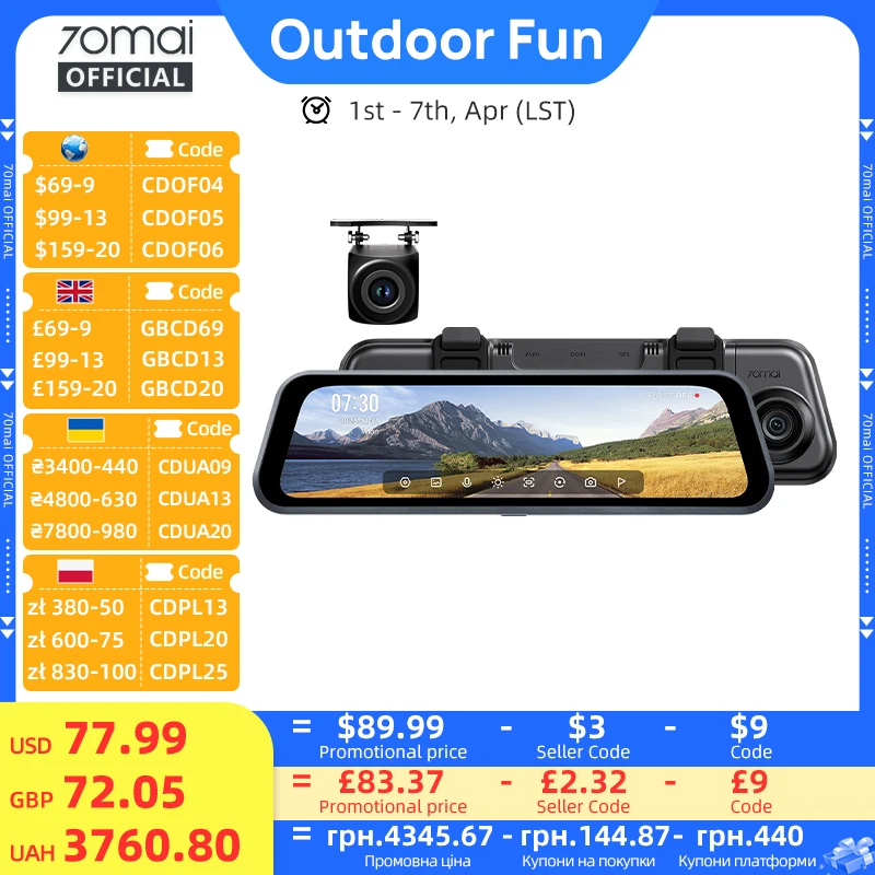 Kamera samochodowa 70mai S410 z wyświetlaczem w lusterku 9,35 cala, przód 2K, tył 1080P, przysłona F1.55, superkondensator, ochrona 24/7, 70mai S410