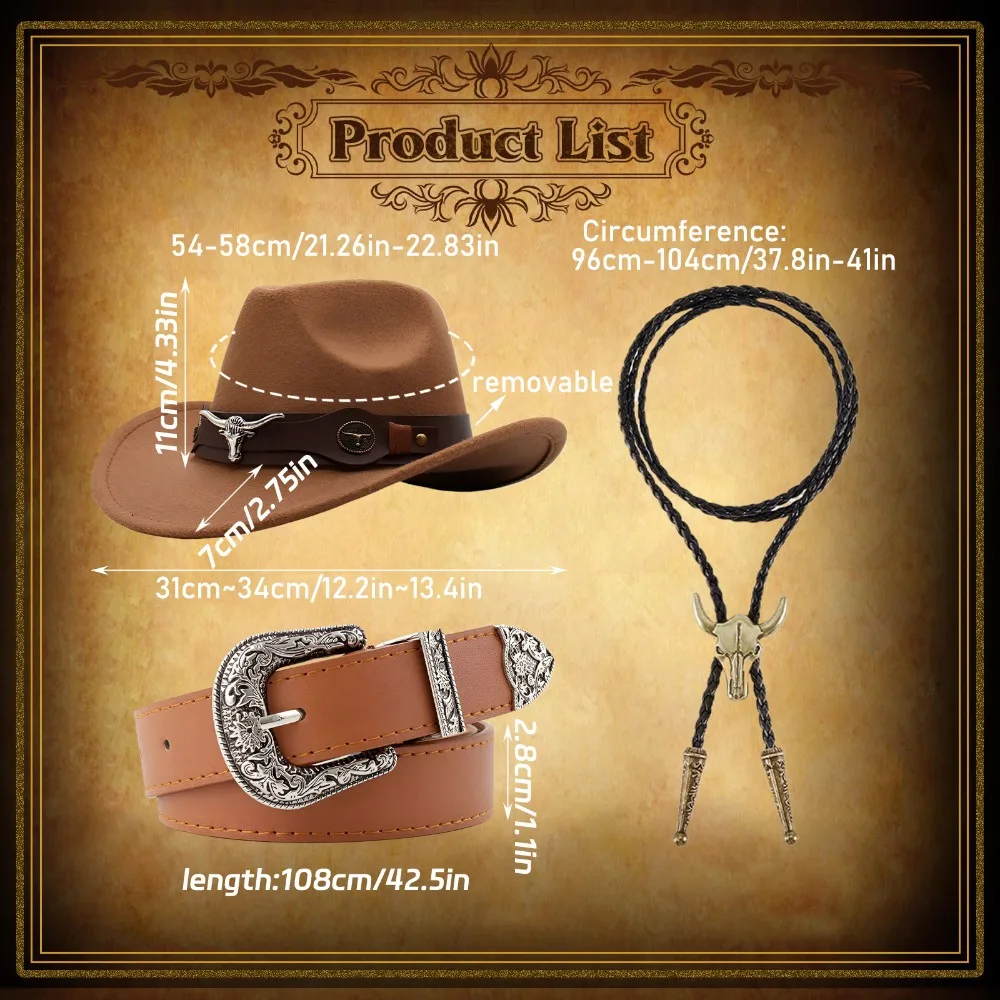 Tibetskie etniczne filcowe kapelusze, styl rodeo western, ozdoba z głową byka, wełniany kapelusz fedora, unisex dodatek do kostiumów festiwalowych