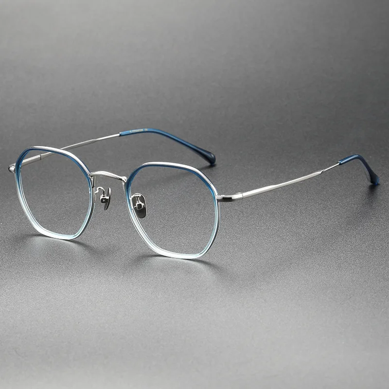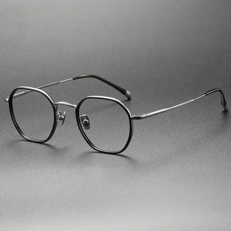 Japoński wzór wielokąt okrągły tytanowa ramka do okularów mężczyźni Vintage okulary korekcyjne kobiety optyczne niebieskie światło Gafas okulary