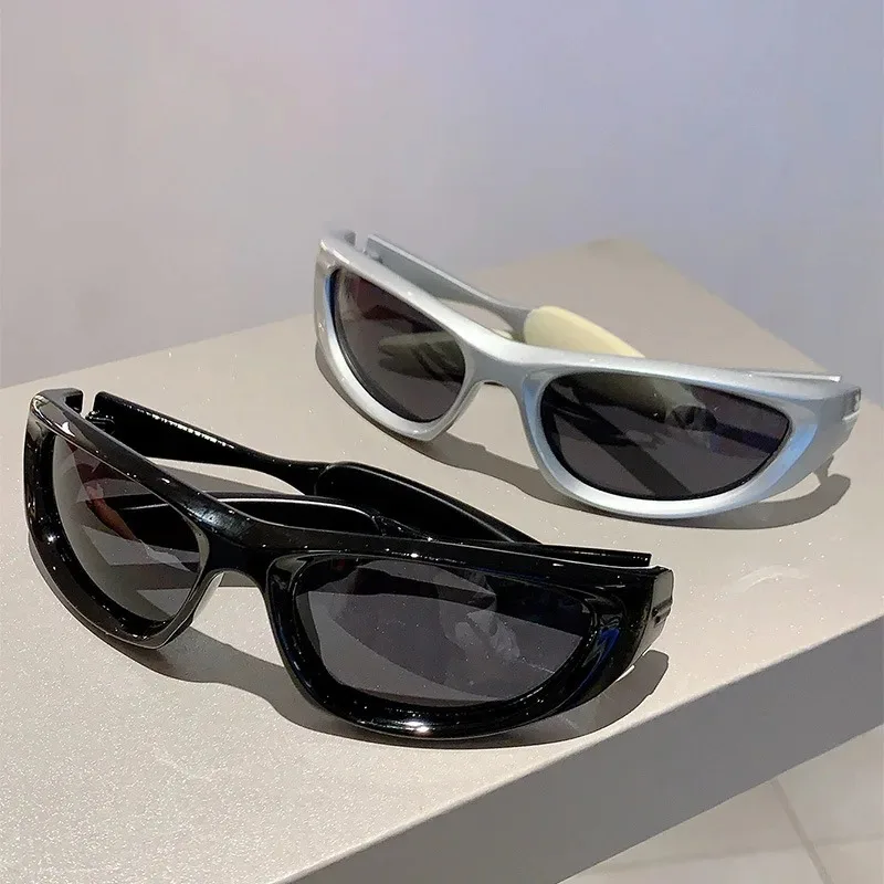 Trend Y2K, sportowe gogle, na zewnątrz, ruch.