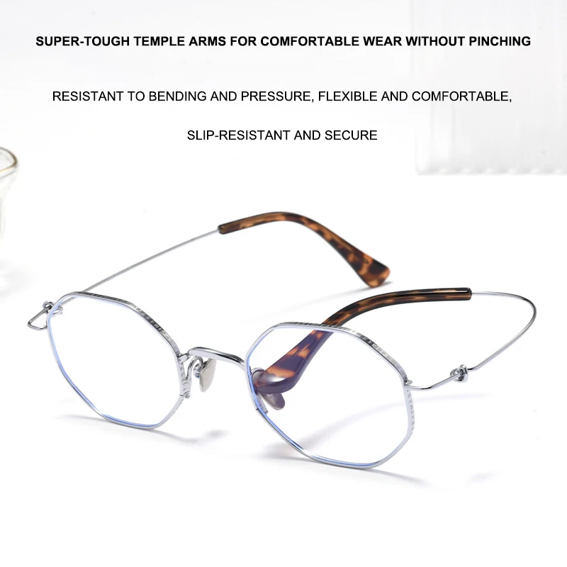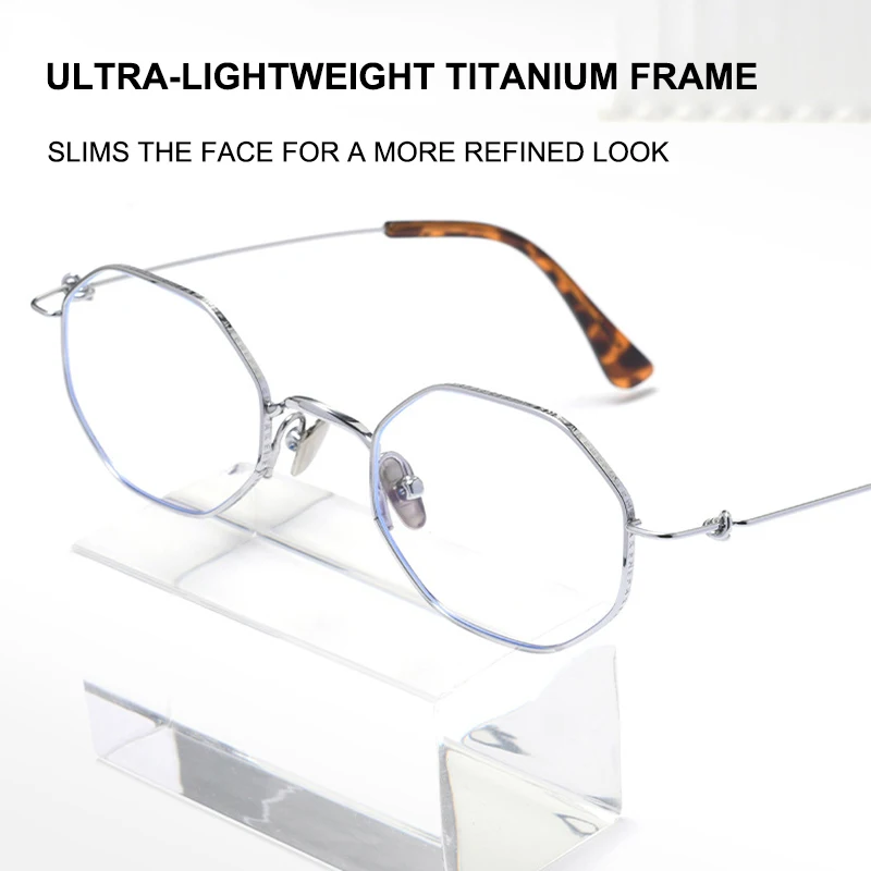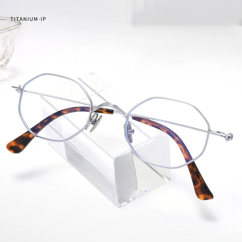 Ultralekkie oprawki okularów z czystego tytanu z delikatnymi srebrnymi obramowaniami, damskie modne retro okulary z małymi oprawkami.
