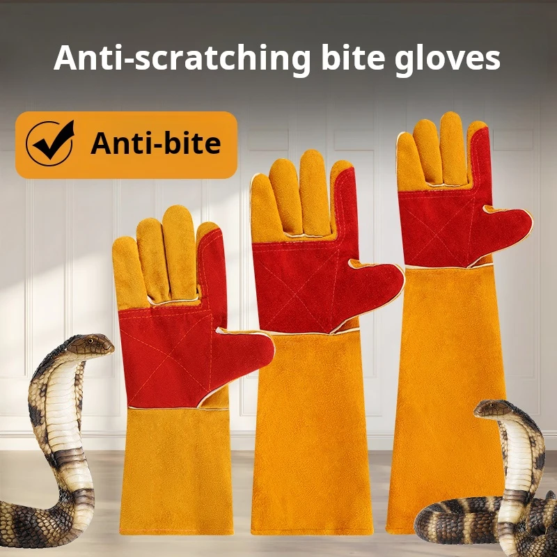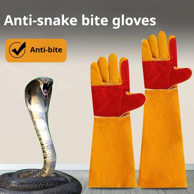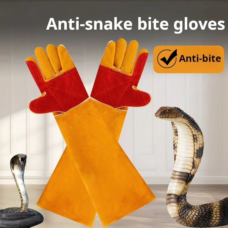 Rękawice ochronne przed ukąszeniami węża, gruba skóra bydlęca, antypoślizgowe, odporne na przebicia, odporne na zużycie, profesjonalne rękawice ochronne dla zwierząt.