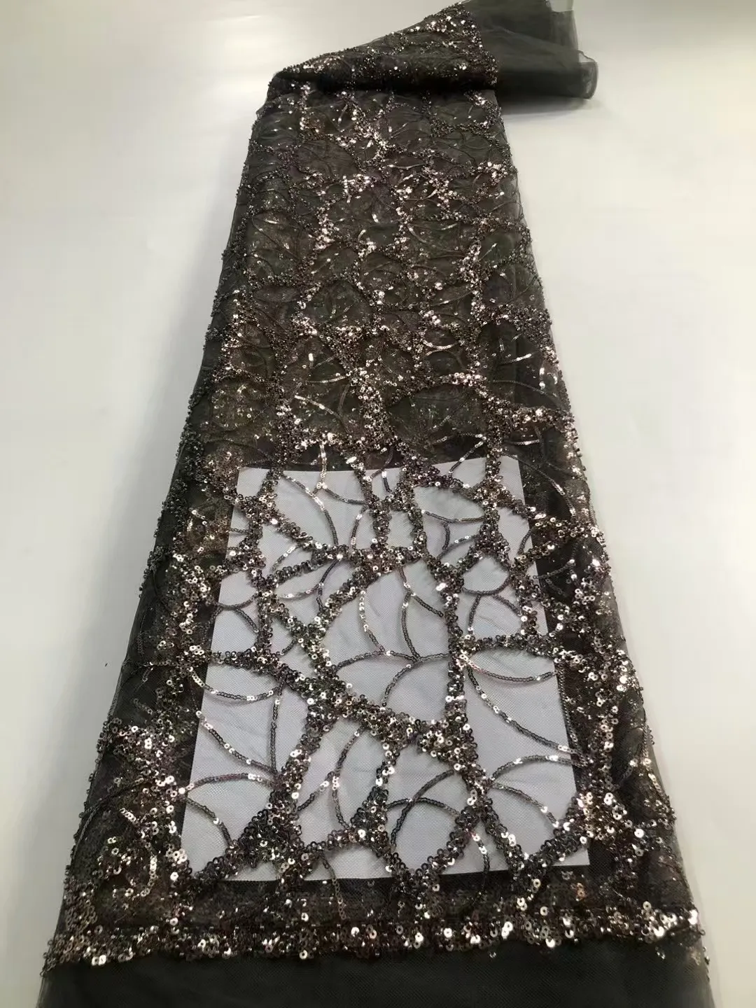 Afrykańska tkanina koronkowa z cekinami, zielona, z koralikami, siateczka na suknie ślubne i odzież - 2026 Gorąca Wyprzedaż Damska haftowana koronka siatkowa
