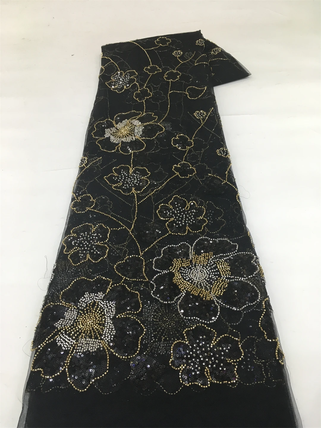 Królewski Niebieski Afrykański Materiał Koronkowy 2026 Wysokiej Jakości Ręcznie Robione Koraliki Koronka Ślubna Luksusowe Cekiny Haftowany Koralikami na Wesele