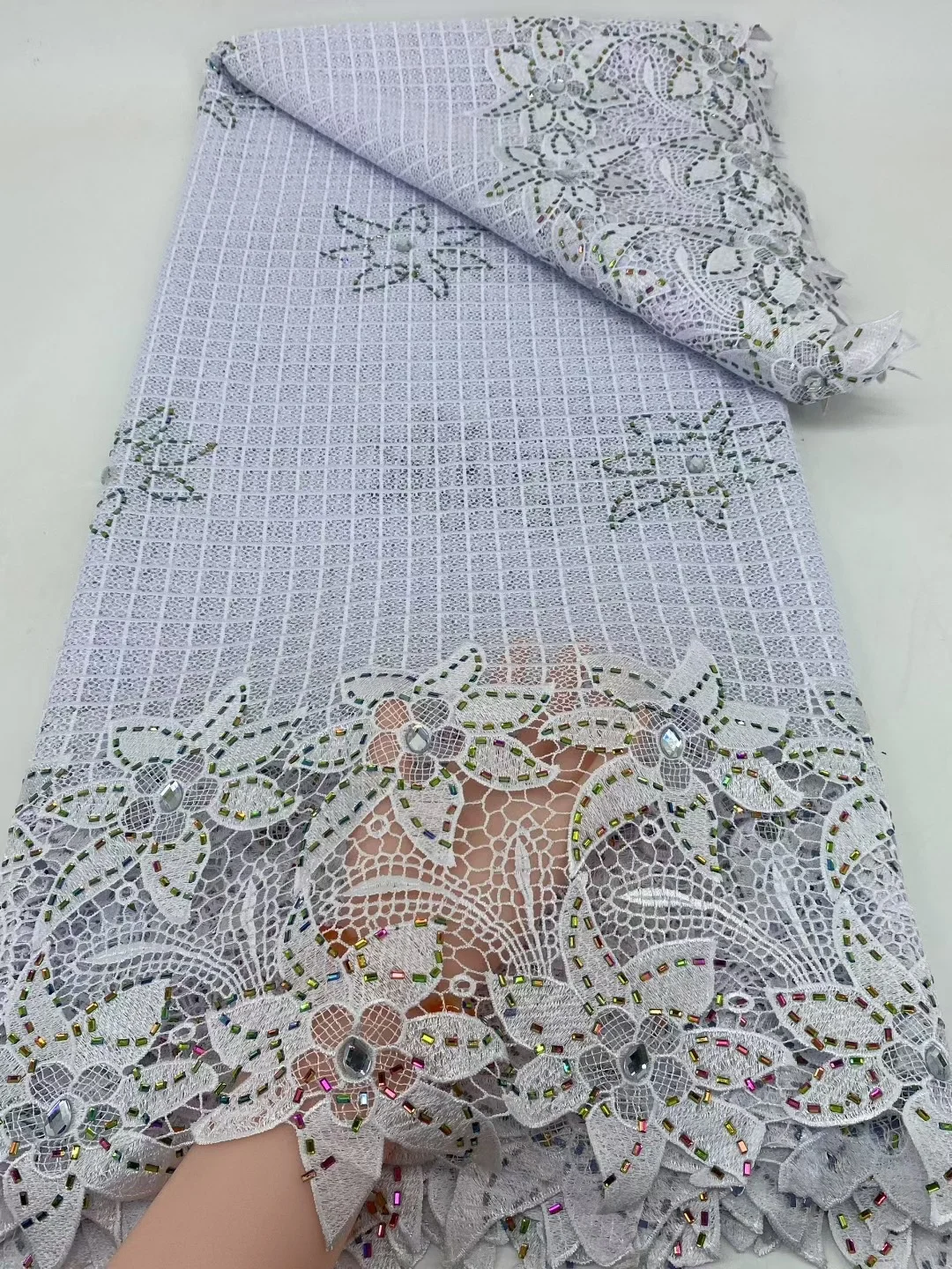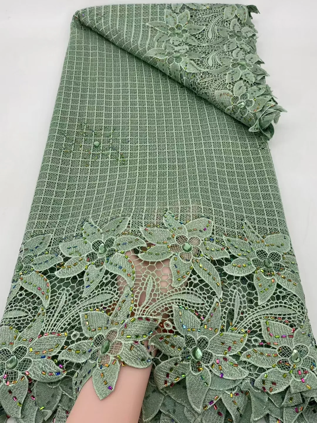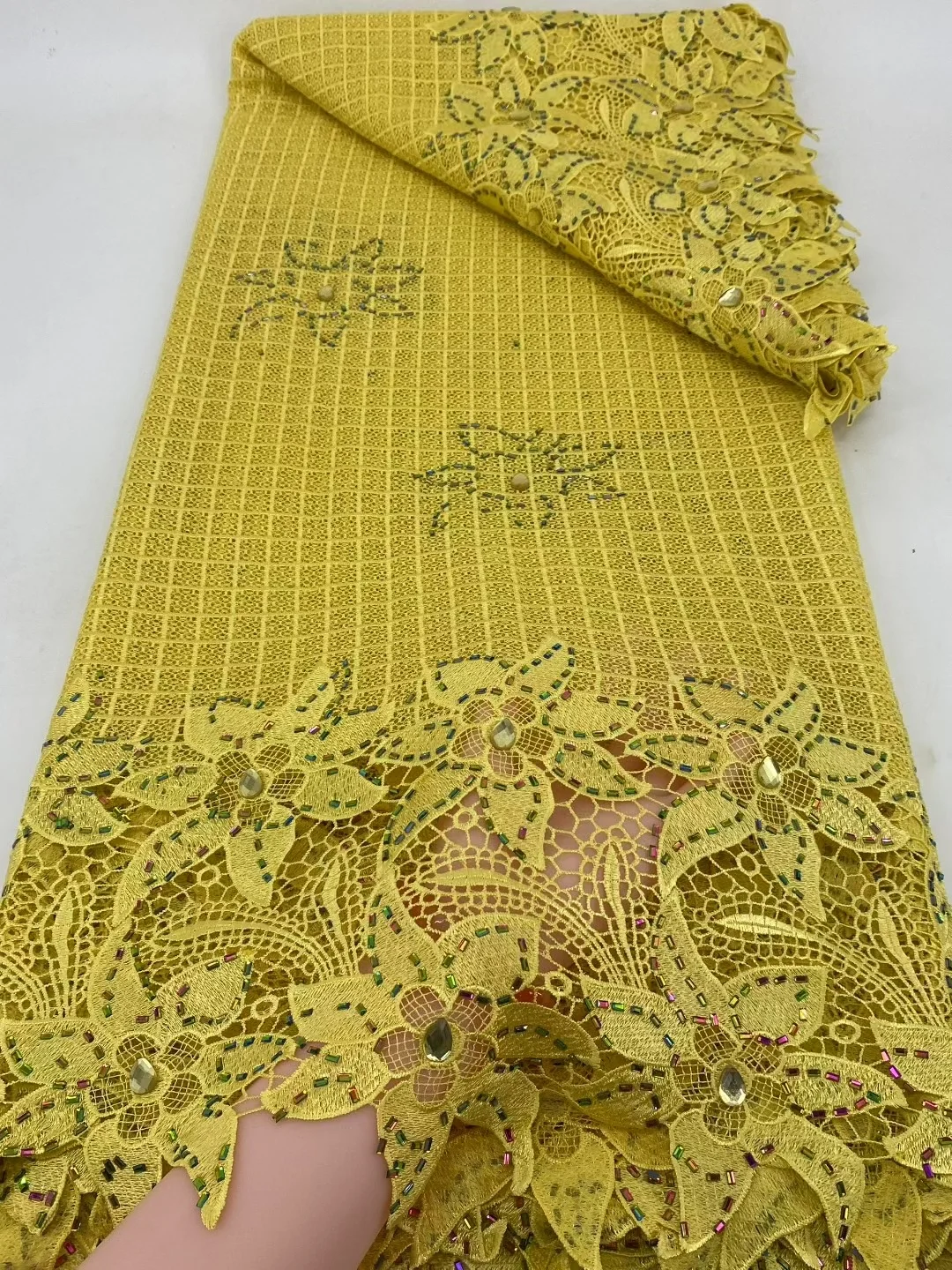 Nigeryjska koronka gipiurowa, wysokiej jakości materiał na koronkę afrykańską rozpuszczalną w wodzie, 5 jardów, idealna na sukienki imprezowe dla kobiet, rok 2026.