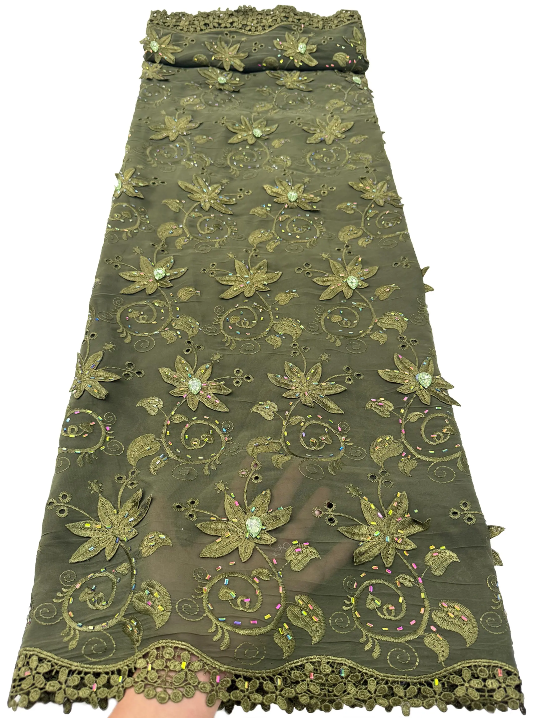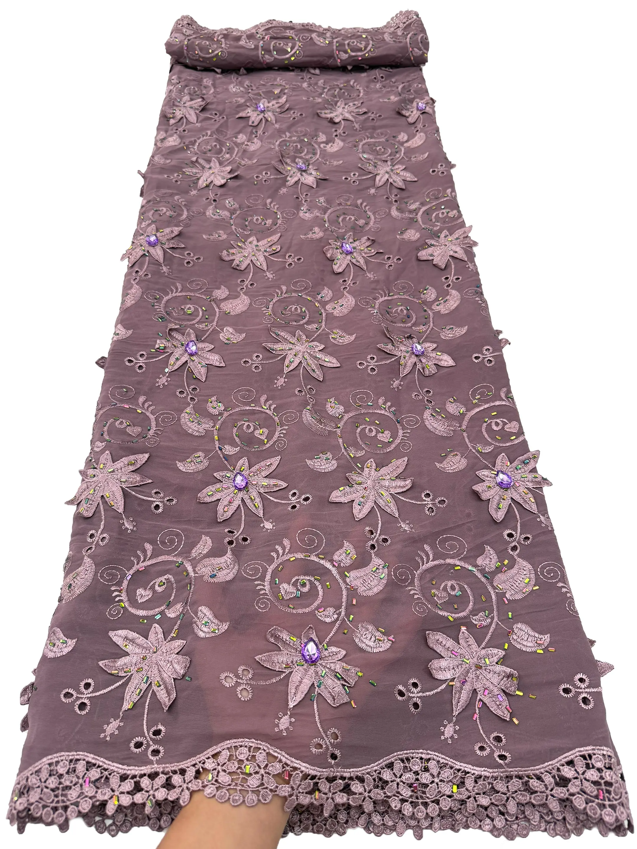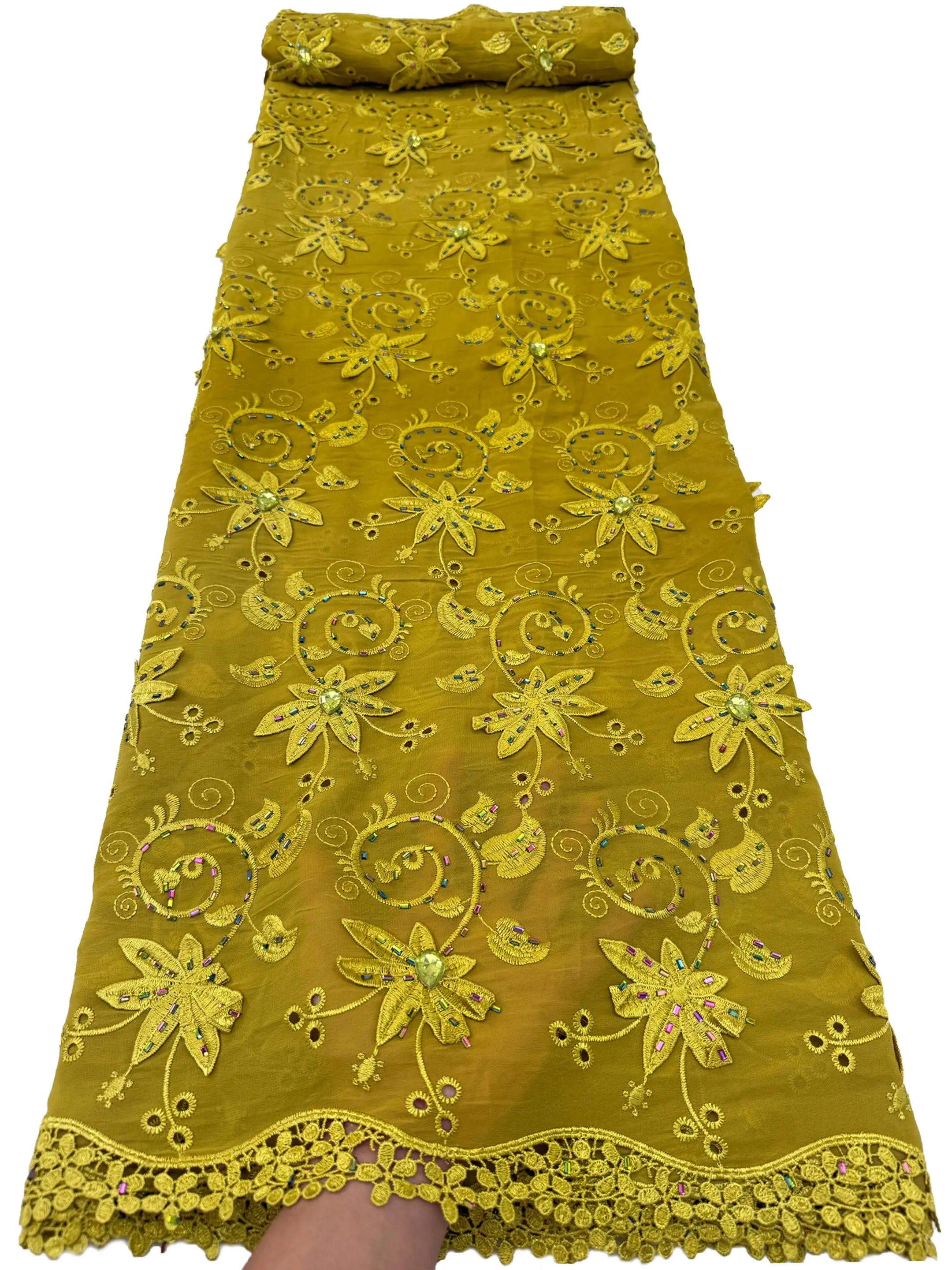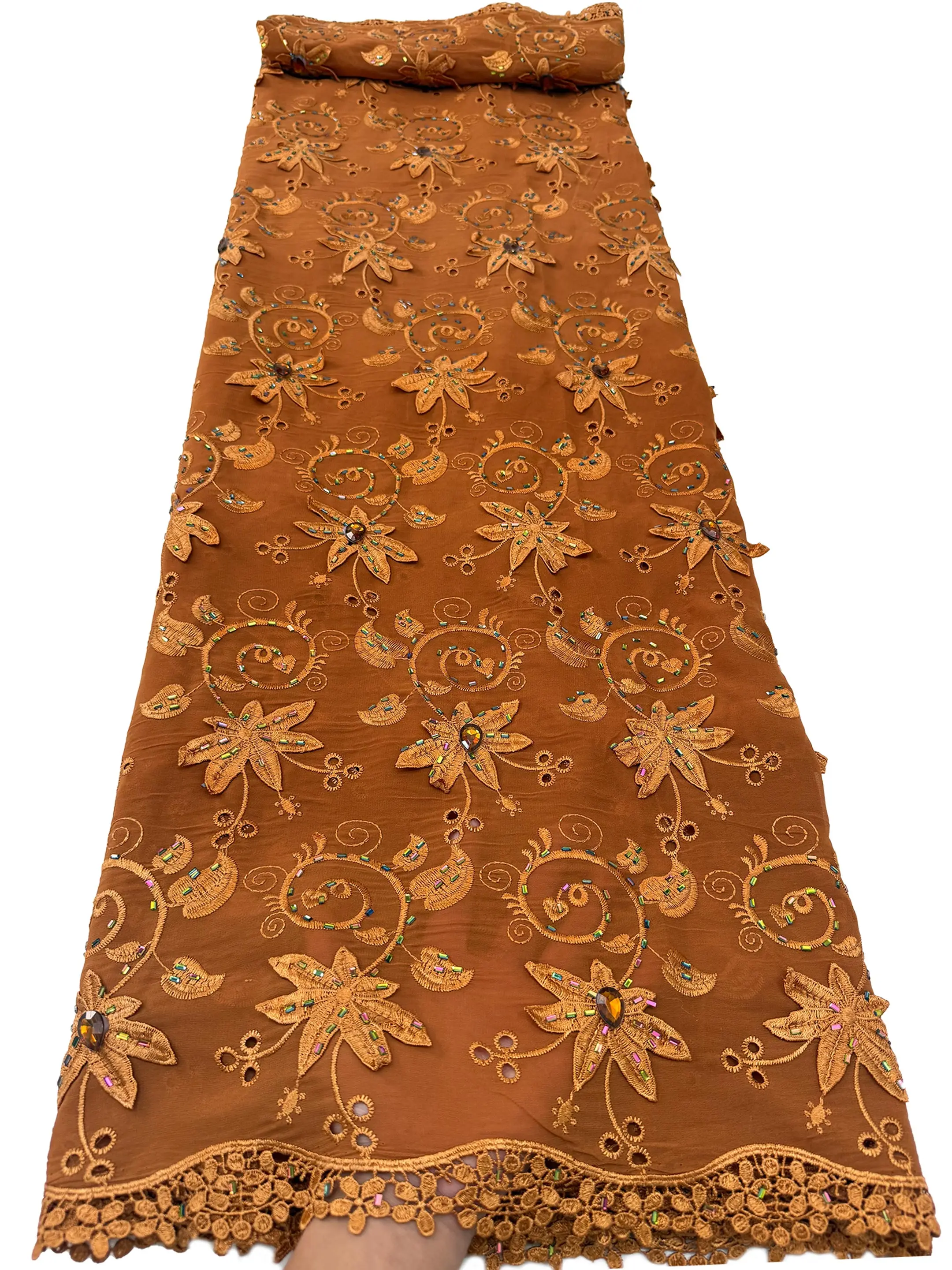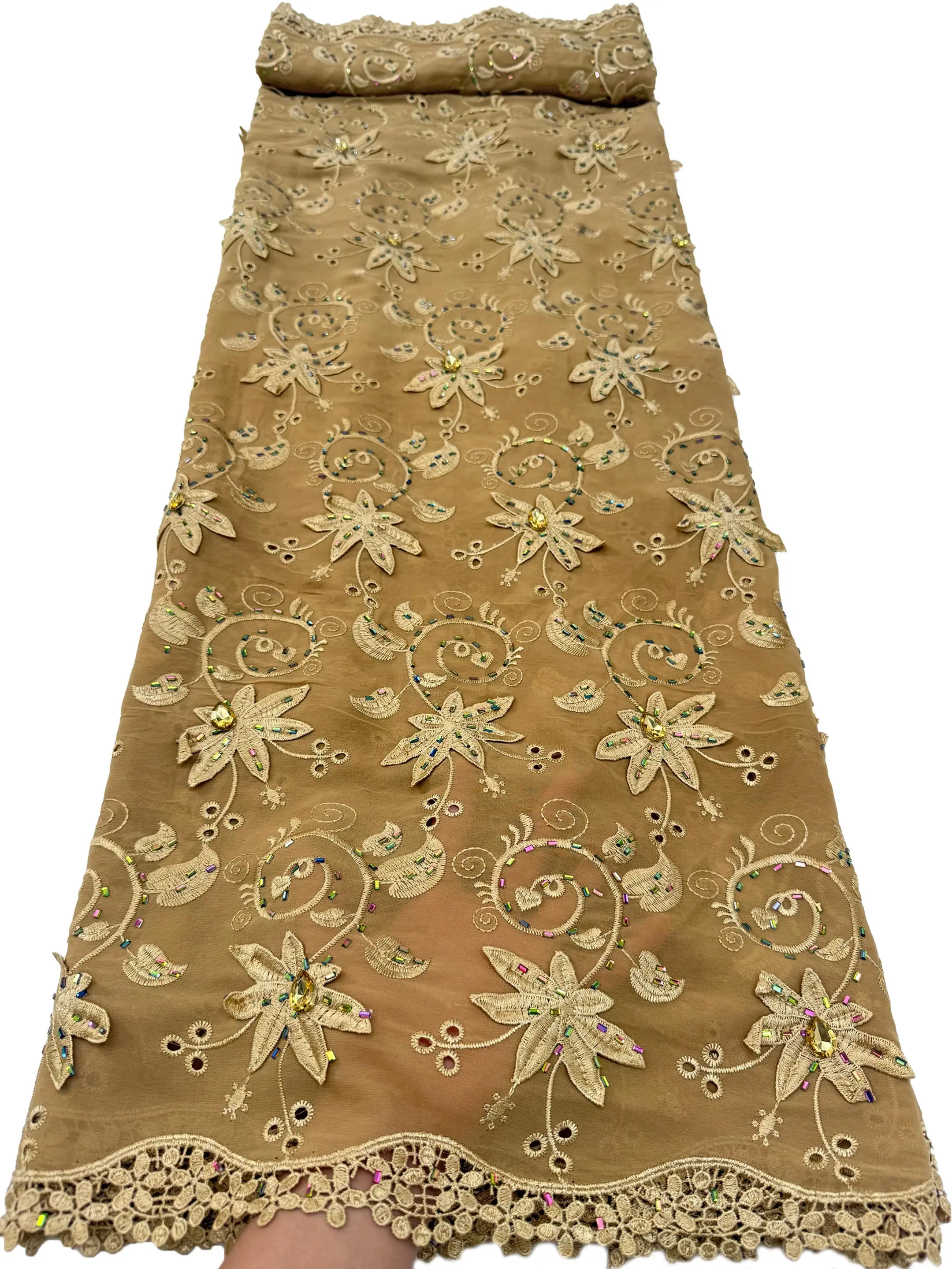 Wysokiej jakości afrykańska gipiura rozpuszczalna w wodzie, nigeryjska koronka z koralikami, haftowana tiulowa tkanina z kamieniami na suknię ślubną lub imprezową, 2026