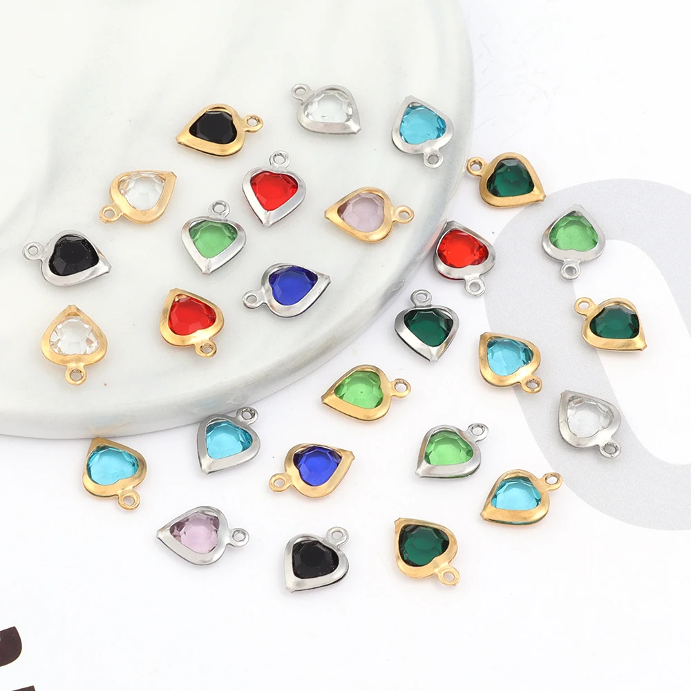 10 sztuk/partia kolorowe serce kryształowe wisiorki ze stali nierdzewnej obramowane wisiorki dla DIY naszyjnik kolczyk bransoletka akcesoria do wyrobu biżuterii