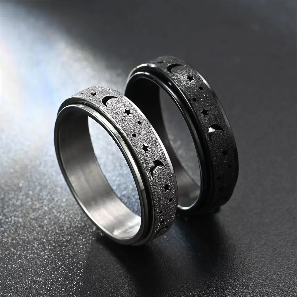 1Pc Obrotowe pierścienie ze stali nierdzewnej dla kobiet Mężczyźni 6MM Obrotowa konstrukcja Księżyc i gwiazda Modna biżuteria na palec serdeczny