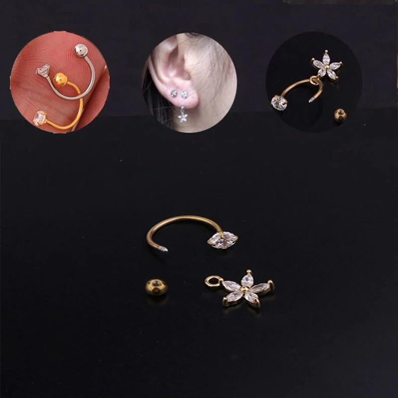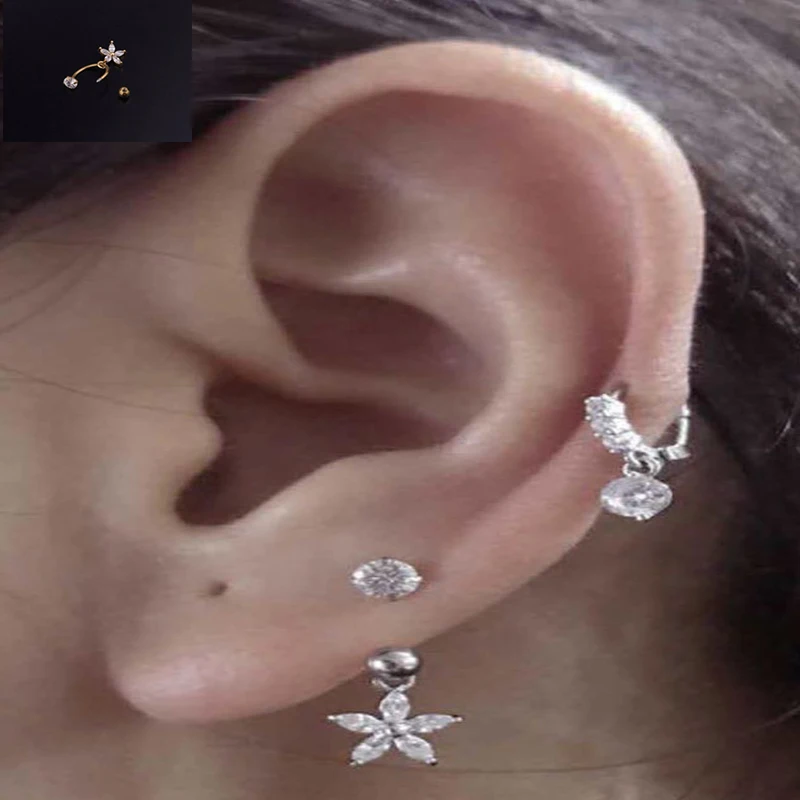 1PC stal chirurgiczna Helix chrząstka muszla CZ serce gwiazda krzyż skrzydła kwiat kolczyk Tragus pierścień Hoop moda Piercing biżuteria