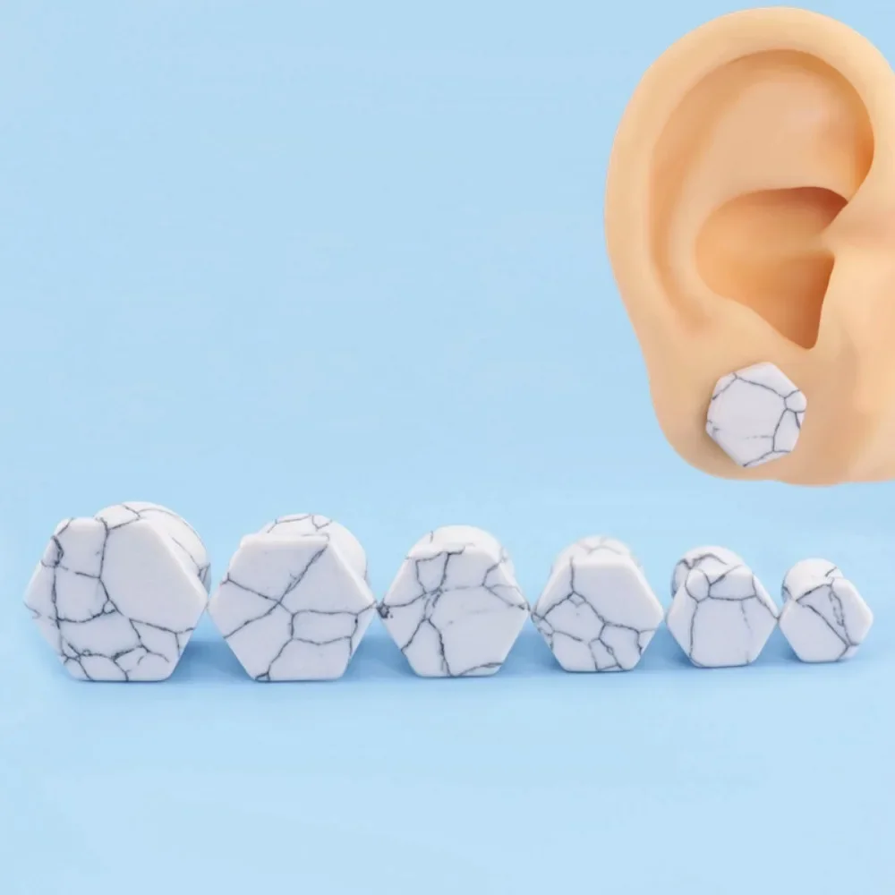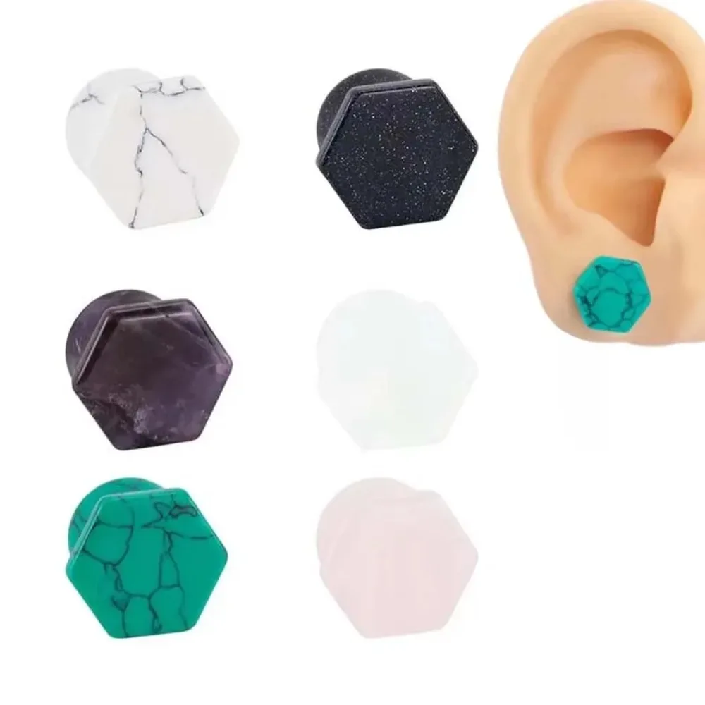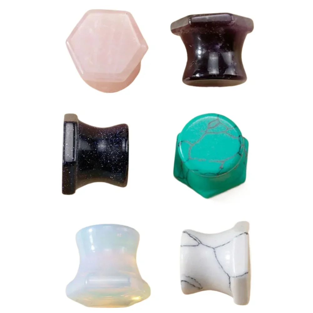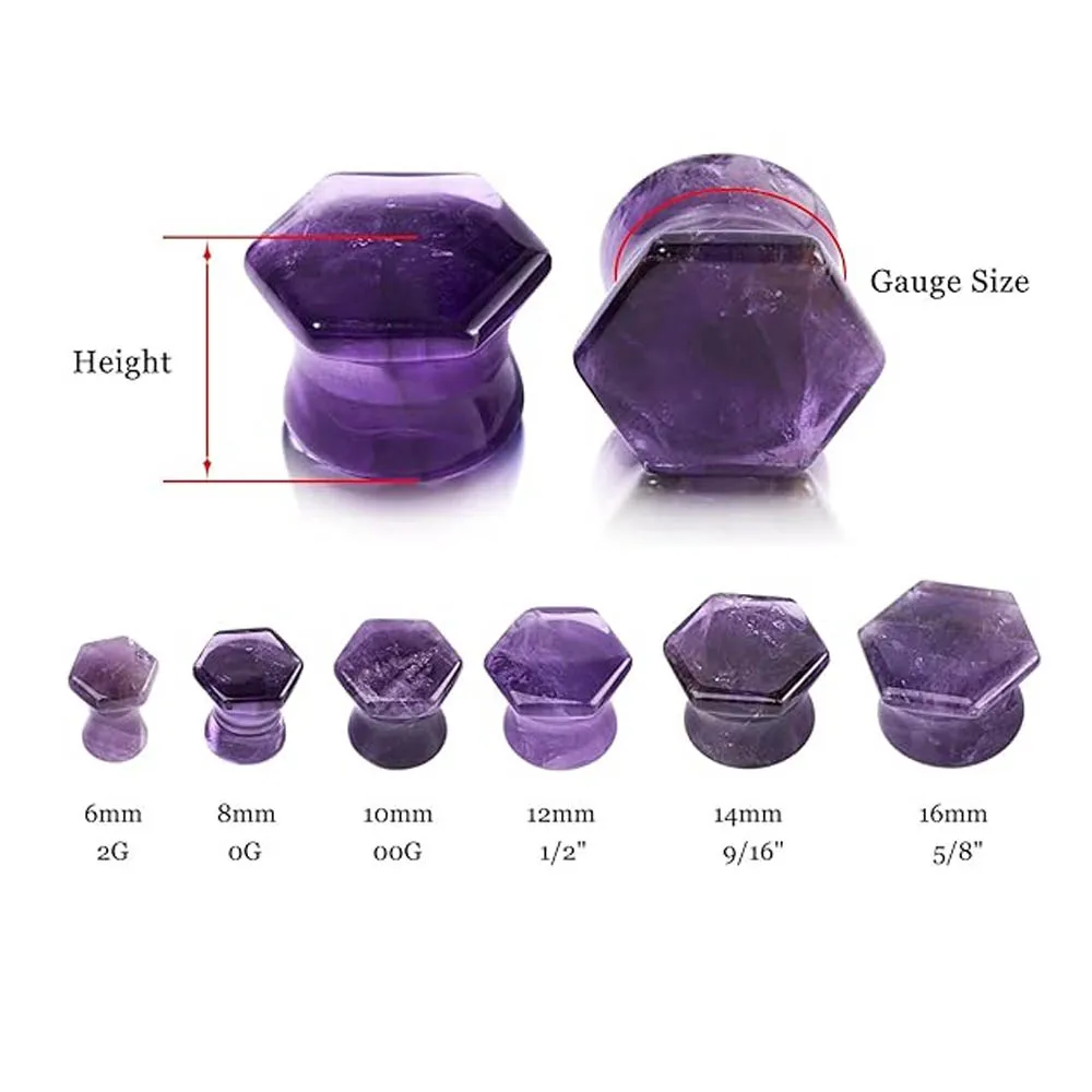 2 szt. Sześciokątne Korki do Uszu z Naturalnego Kamienia Ametystu, Rozszerzacze do Uszu, Kolczyki do Ciała, Rozmiary 6-16mm