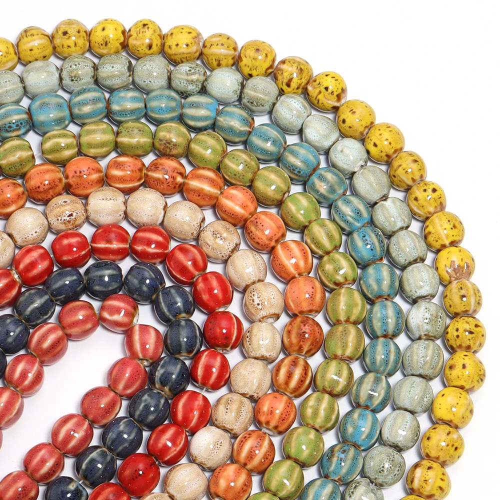 Apx 28 sztuk kolorowe okrągłe koraliki dystansowe dyniowe paski koraliki ceramiczne dla DIY bransoletka naszyjnik tworzenia biżuterii luźne koraliki