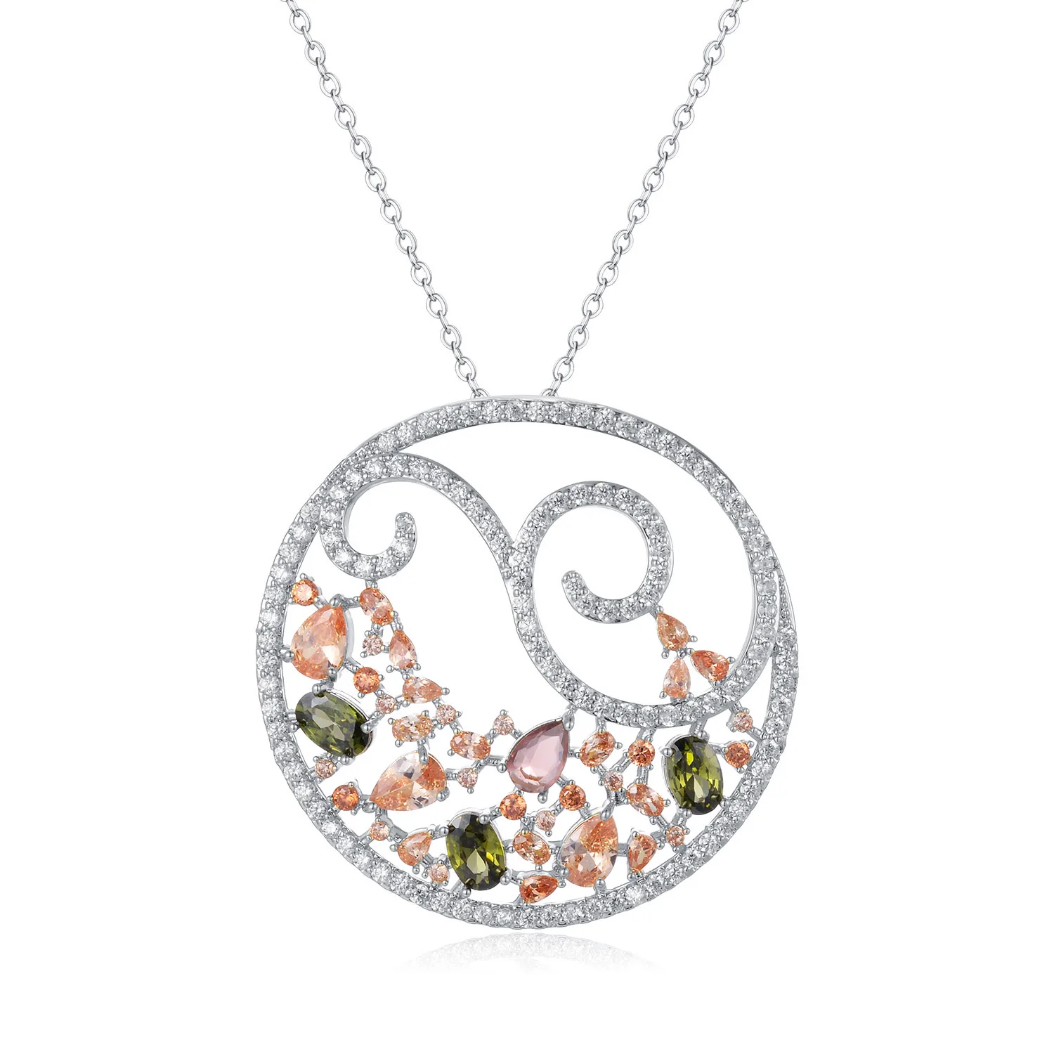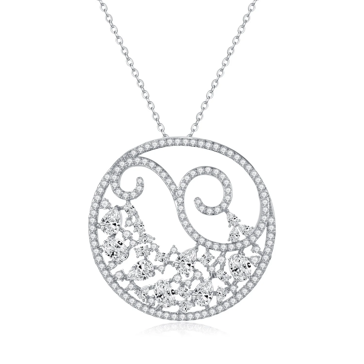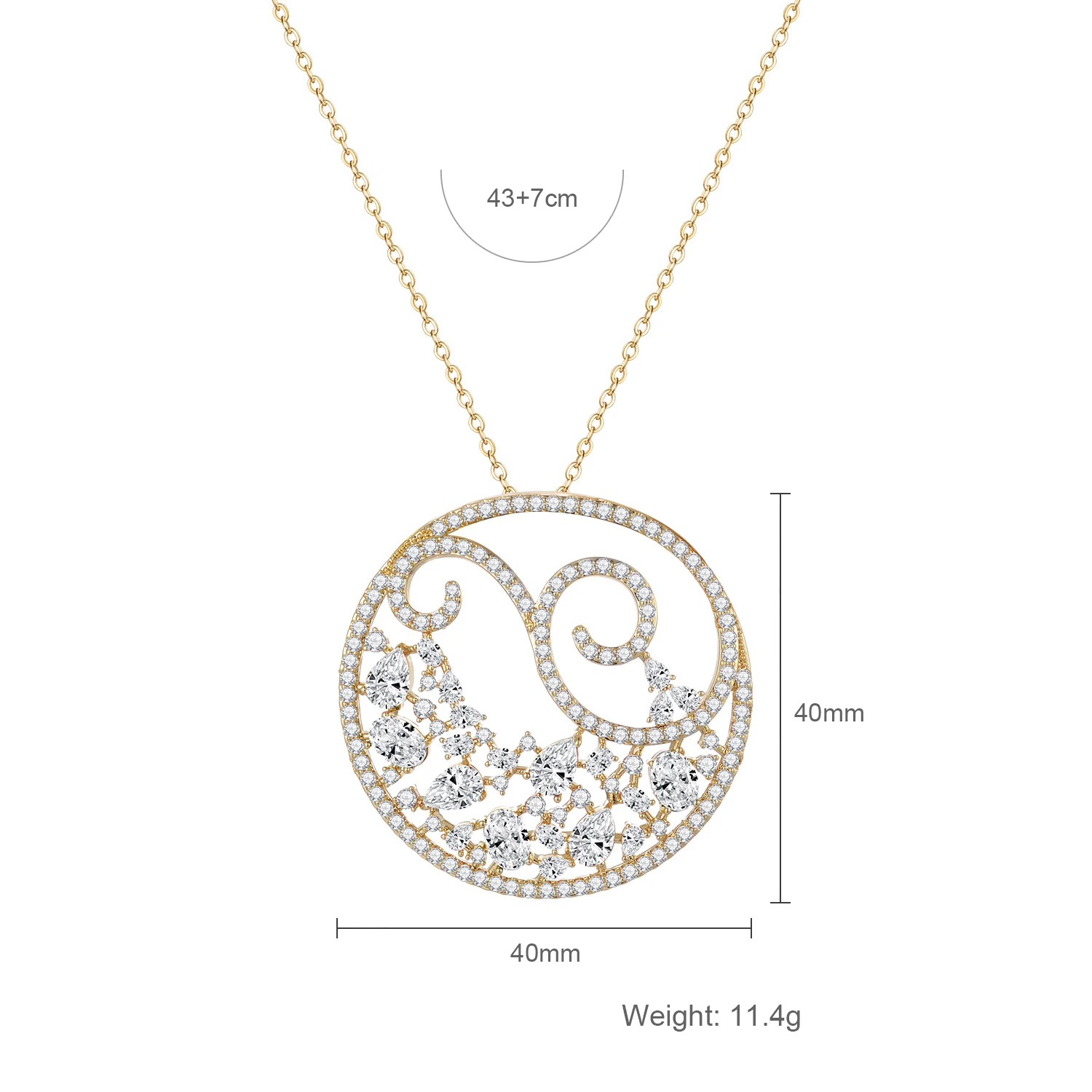 Elegancki wygląd: ten oszałamiający naszyjnik ma okrągły wisiorek wykonany z precyzją i ozdobiony błyszczącymi cyrkoniami w kształcie bagietki.