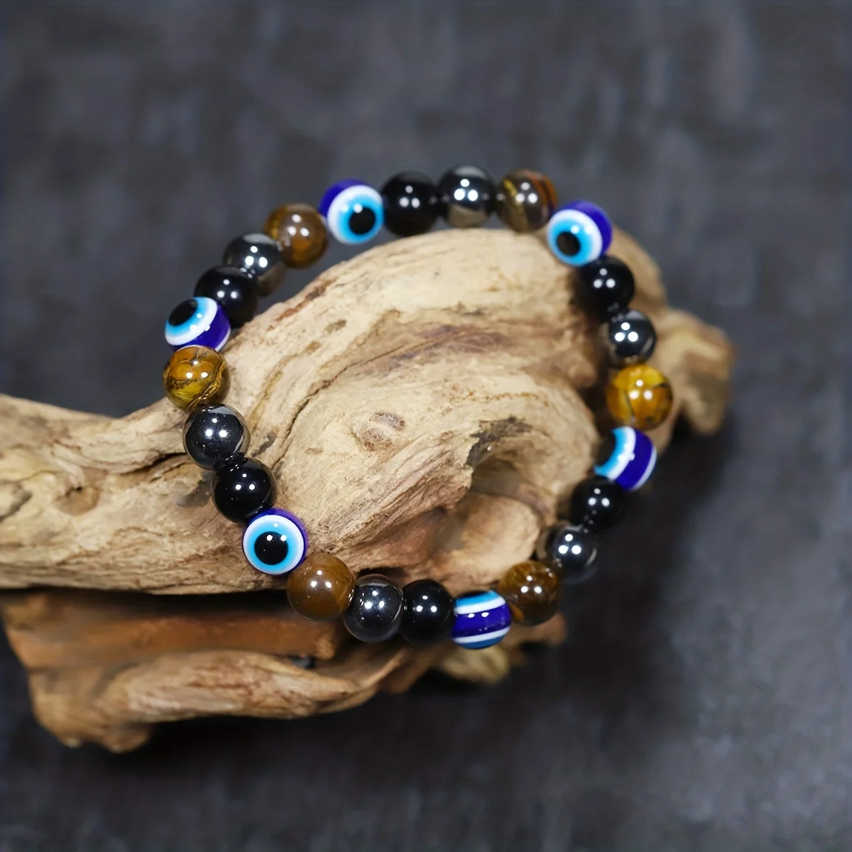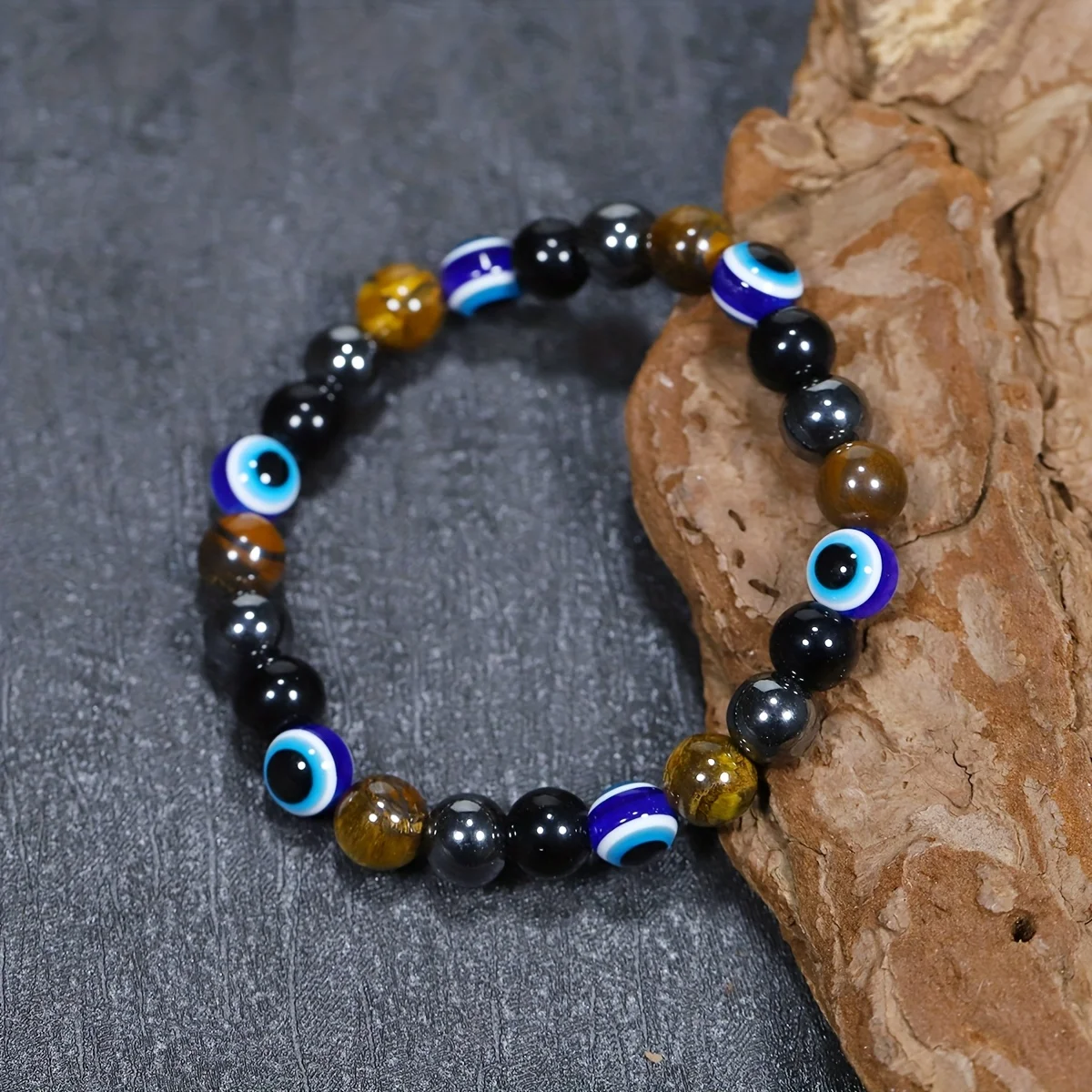 Bransoletka ochronna na bogactwo – Niebieskie Oko Proroka, Hematyt, Żółty Tygrysie Oko, Obsydian
