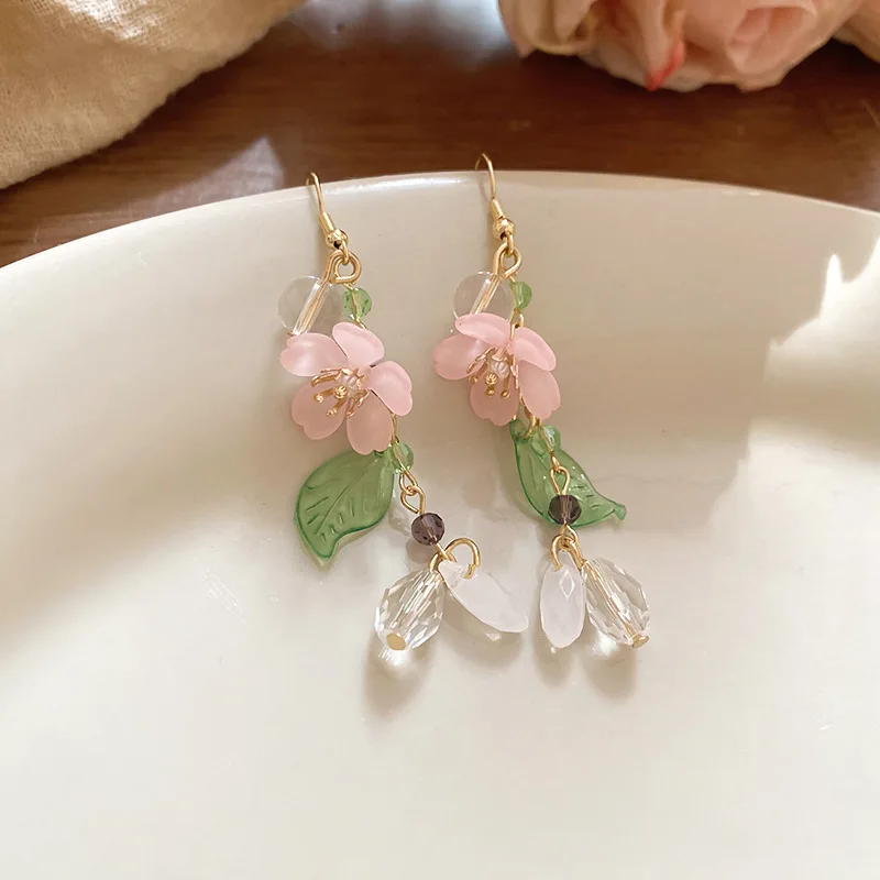 Chińskie szklane koraliki Kwiatowe kolczyki z frędzlami dla kobiet Słodki styl Wszechstronny kolczyk w kształcie kropli Elegancka piękna biżuteria Prezent dla przyjaciół