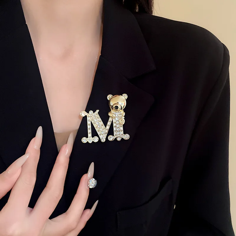 Cyrkonie kapanie niedźwiedź litery broszki luksusowy śliczny stanik modna osobowość atmosferyczna broszka akcesoria dla kobiet