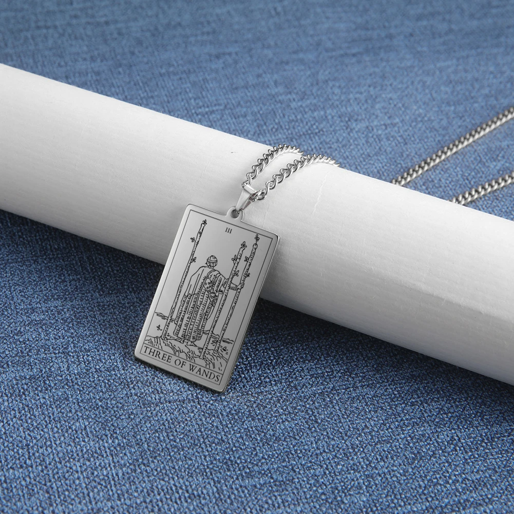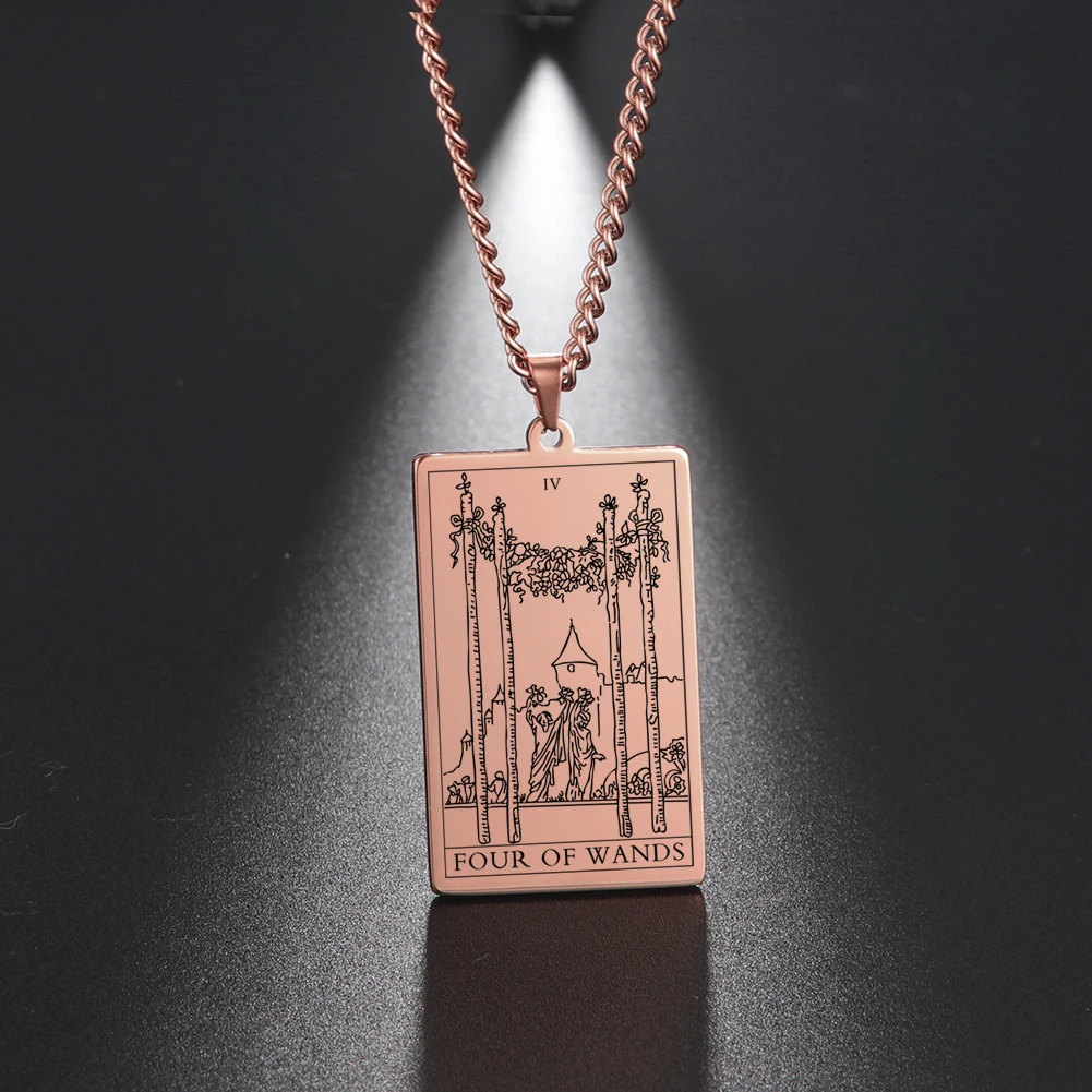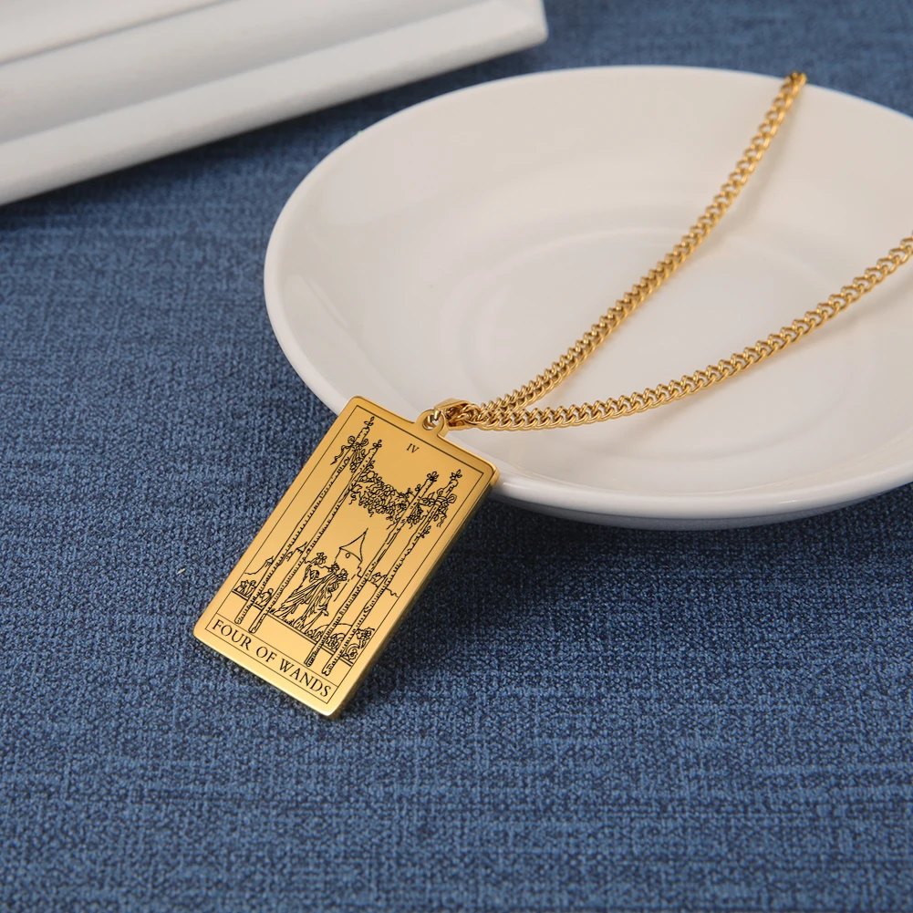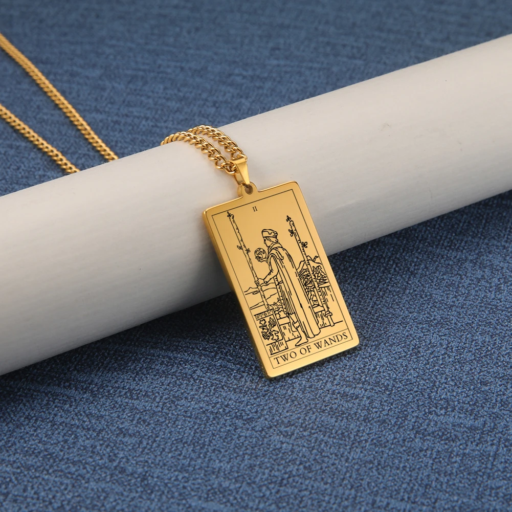 Dawapara różdżki karty do tarota Vintage wisiorek Amulet naszyjnik Link Chain talizman naszyjniki biżuteria ze stali nierdzewnej złoty czarny