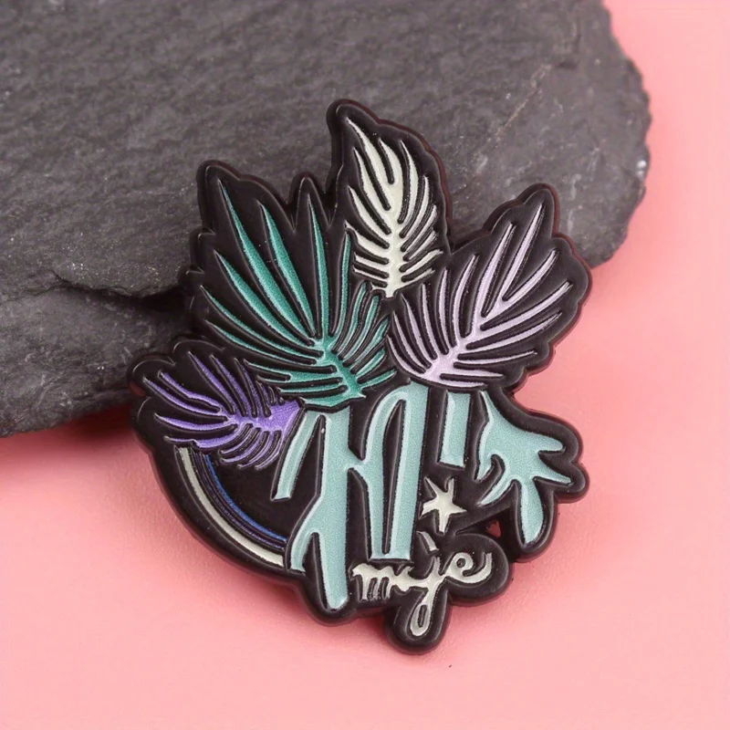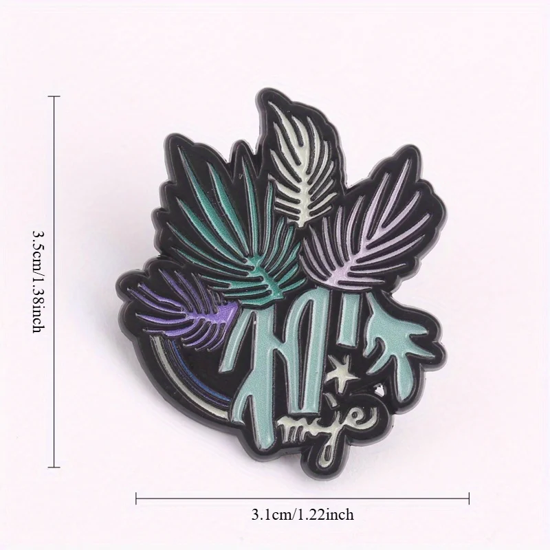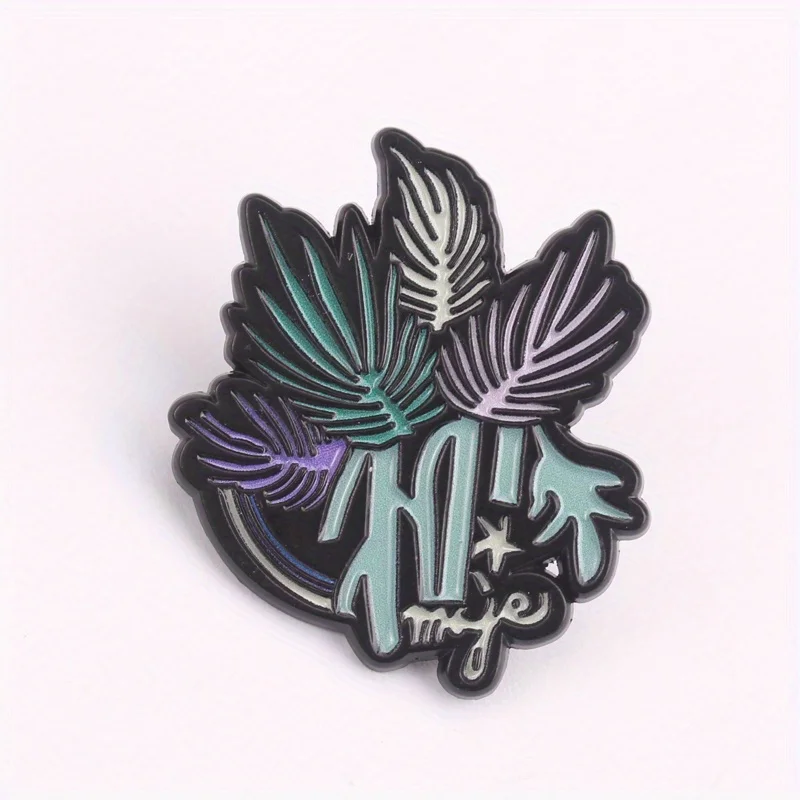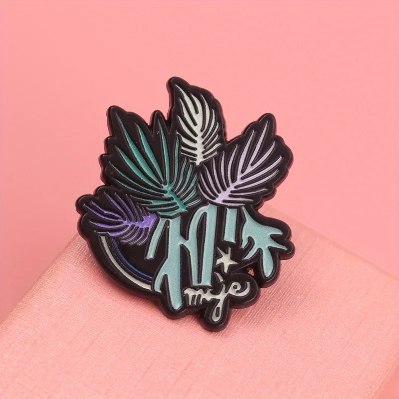 Emaliowana szpilka Botanical Reverie - motyw gradientowego liścia z typografią „LEGACY OF GREEN”, biżuteria inspirowana naturą dla świadomych ekologicznie