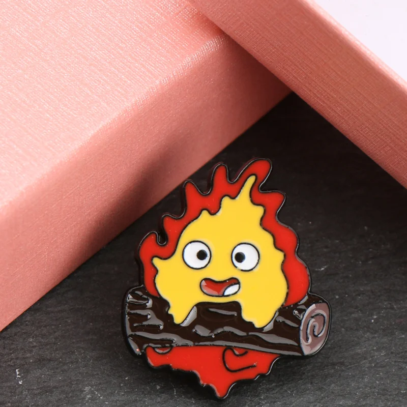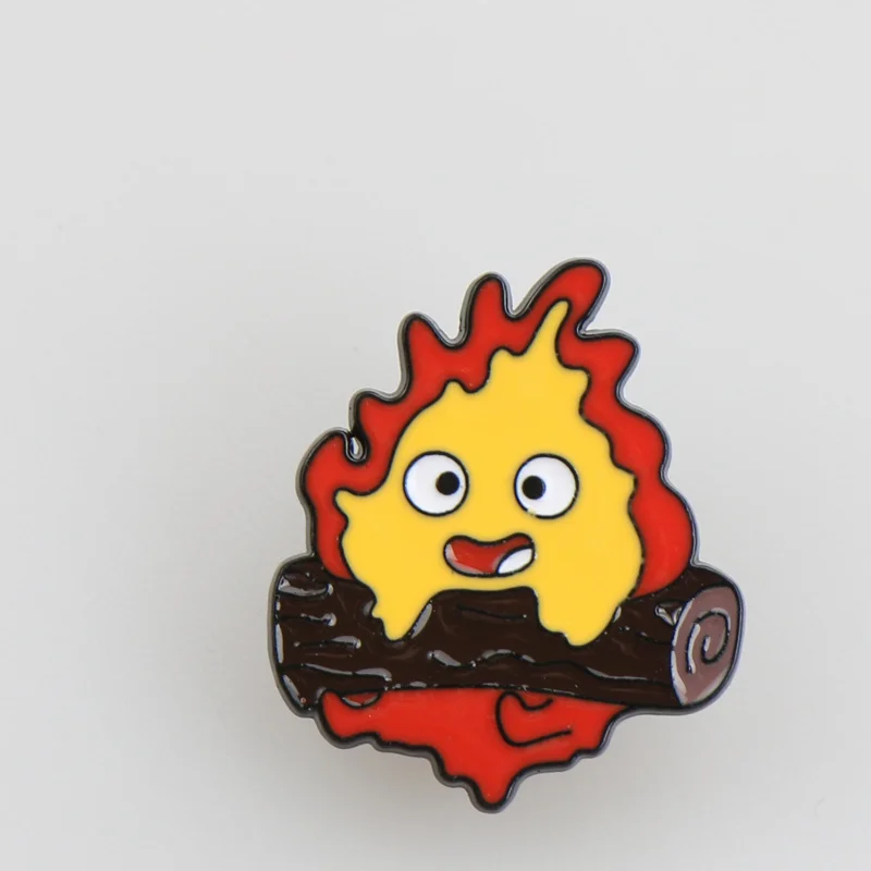 Kreskówkowa Kreatywna Urocza Broszka Ogień Płomień Akcesorium Unikatowy Mały Strażak Drewniana Kształt Łączona Odznaka Unisex Przypinka