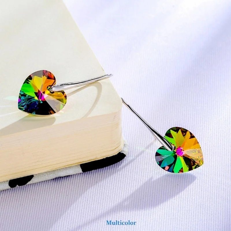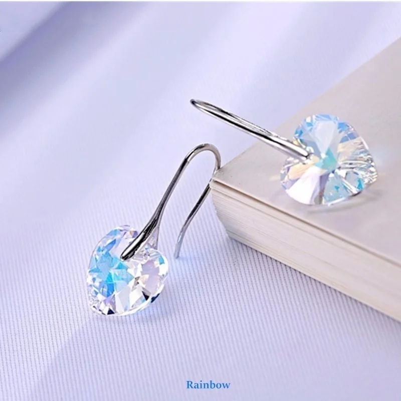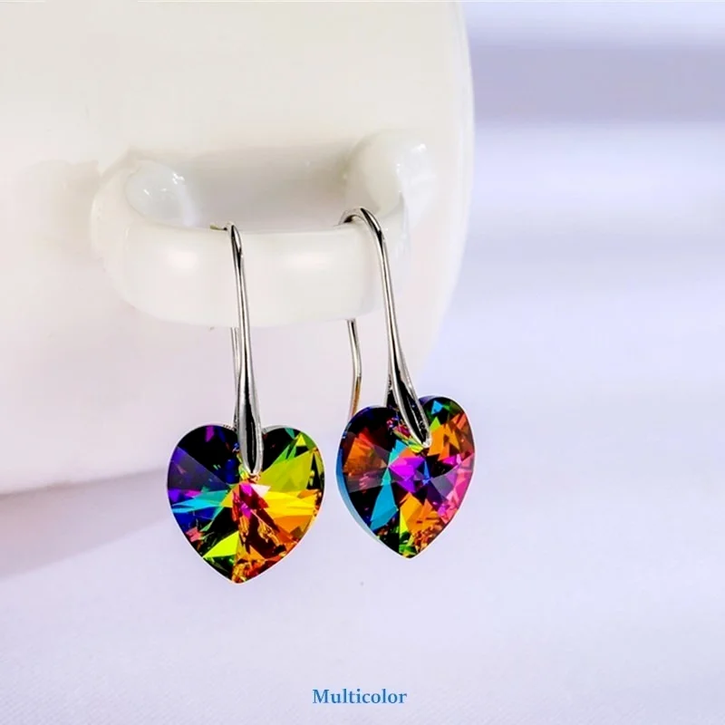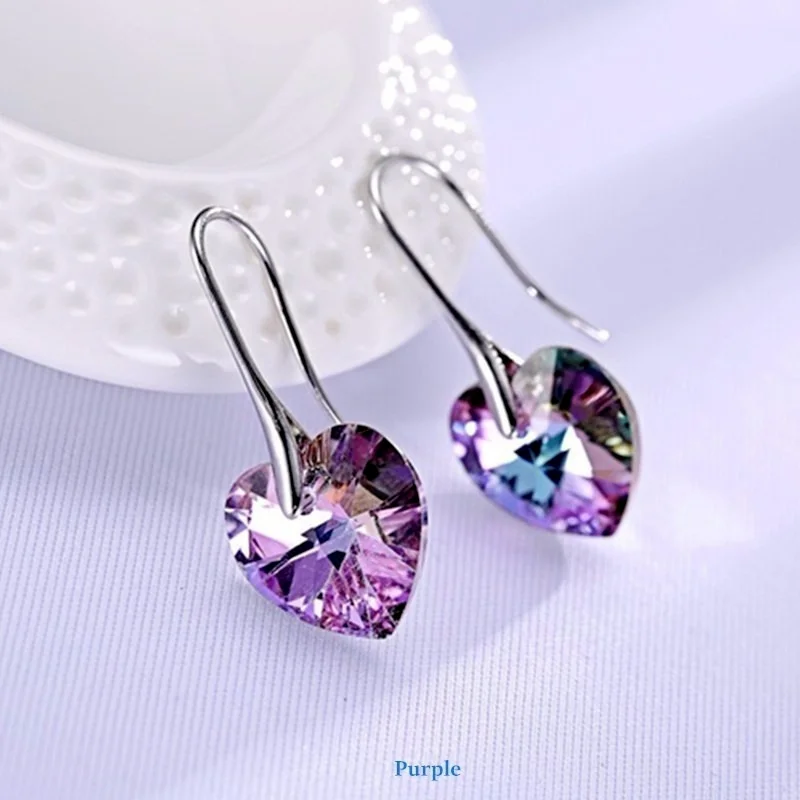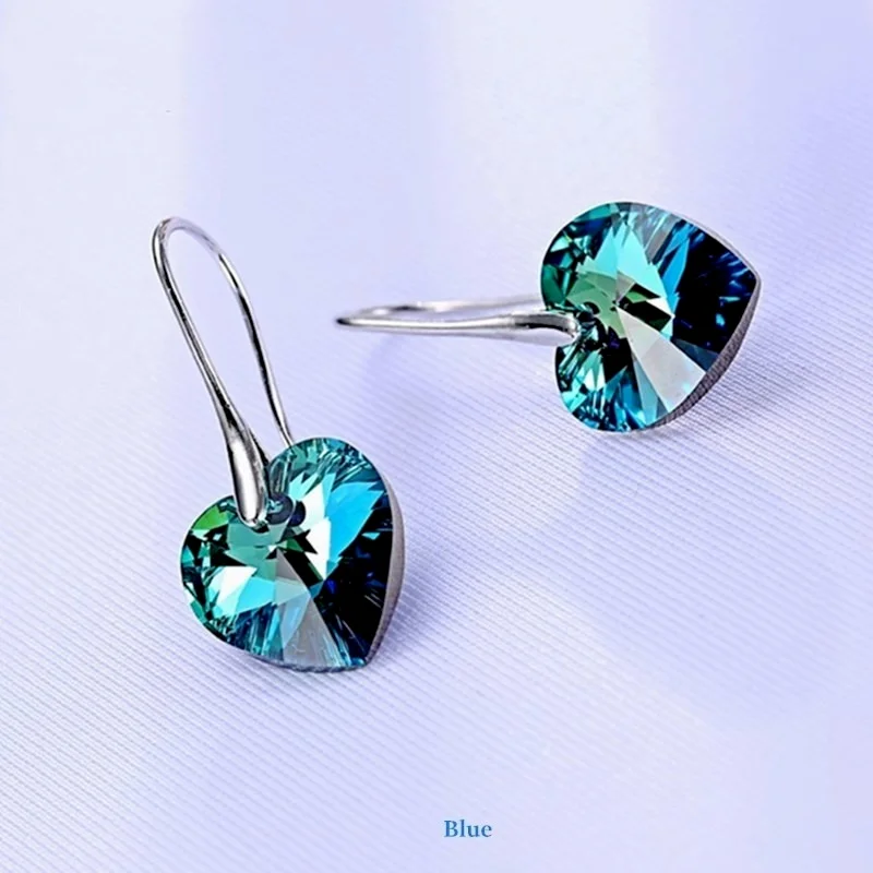 Modne kolczyki wiszące serca kryształy dla kobiet Party gorący kolor srebrny biżuteria do uszu prezent dla przyjaciół