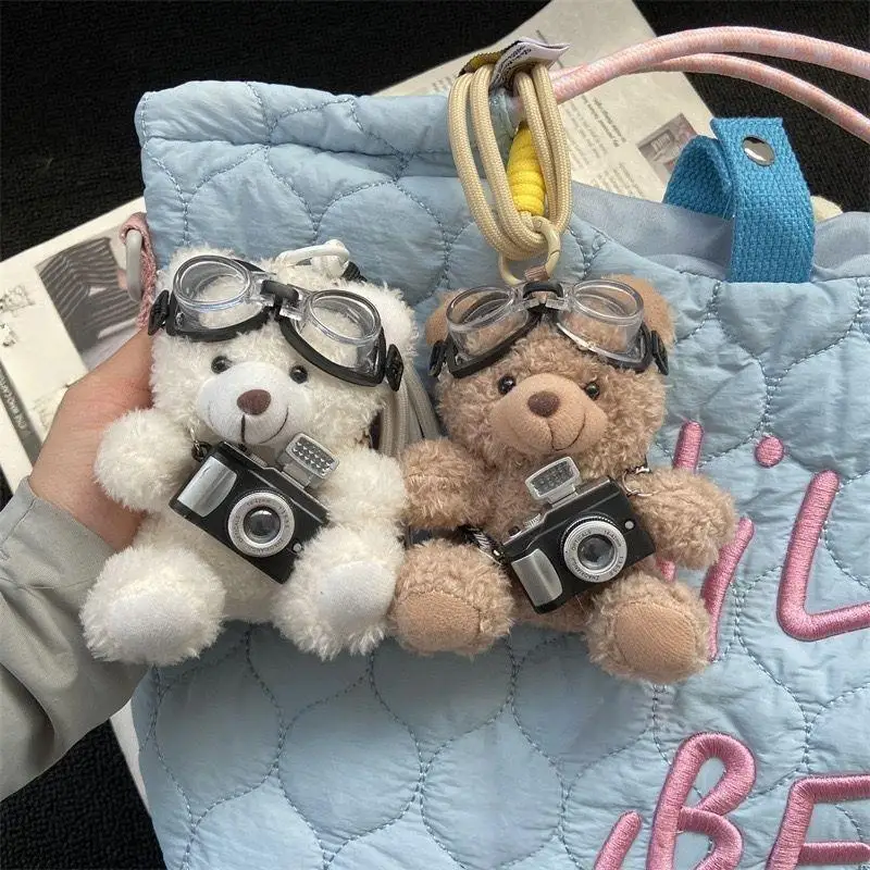 Modny pluszowy wisiorek do plecaka w kształcie misia, urocza lalka z kreskówki - brązowy miś, ozdoba do zawieszenia, breloczek do torby DIY