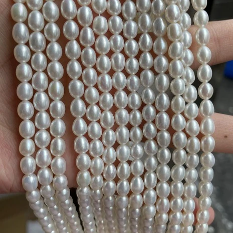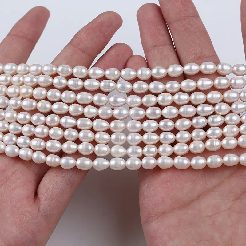 Naturalne Perły Słodkowodne Ryżowe Koraliki AAA 5-6mm Białe Luźne Koraliki Dystansowe do Wyrobu Biżuterii DIY Naszyjnik Bransoletka Akcesoria