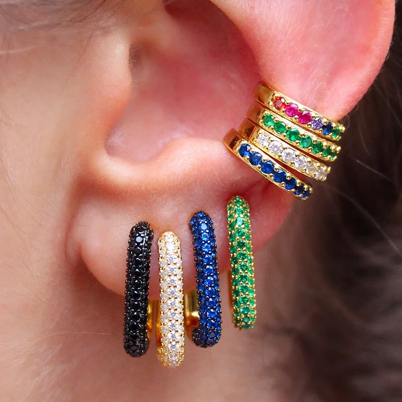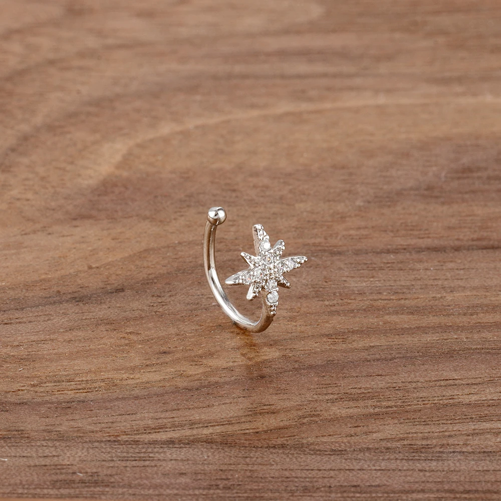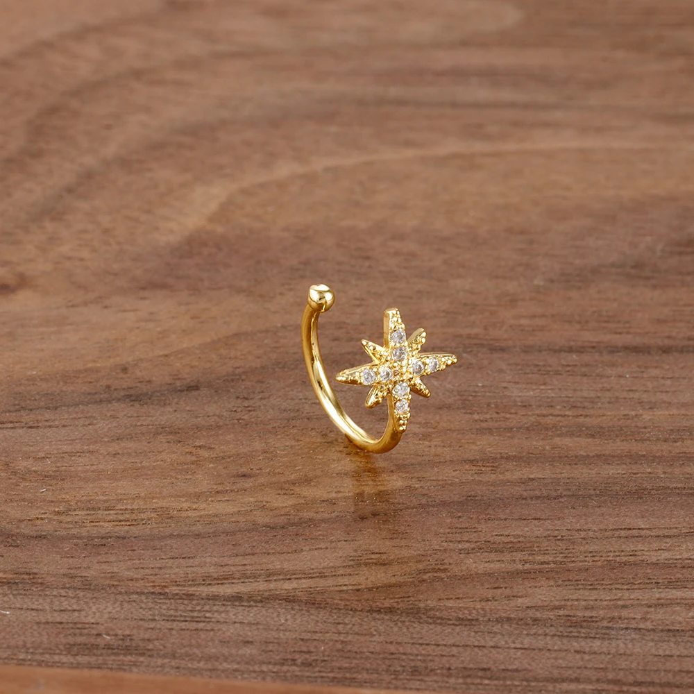 Nowa moda Klips do ucha w kształcie gwiazdy w kolorze złotym dla kobiet Dziewczyny Kpop Słodka cyrkonia ze stali nierdzewnej Nie przekłuwający mankiet na ucho Biżuteria estetyczna