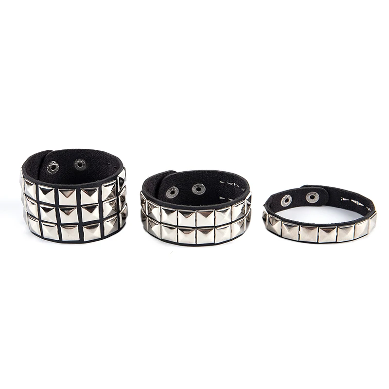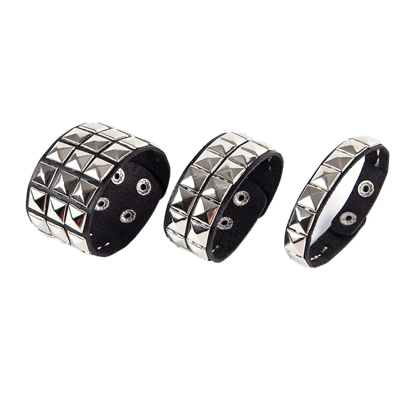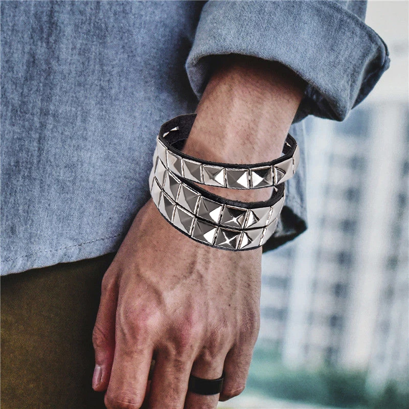 Punk Gothic Rock Unikalna Bransoletka Męska z Szeroką Mankietą, Nitami i Ćwiekami, Biżuteria Męska