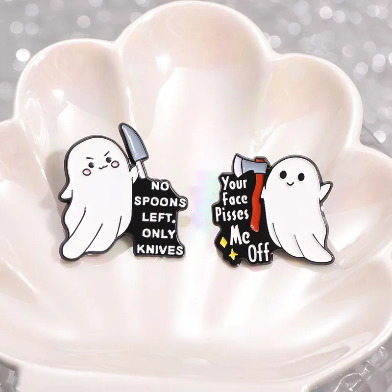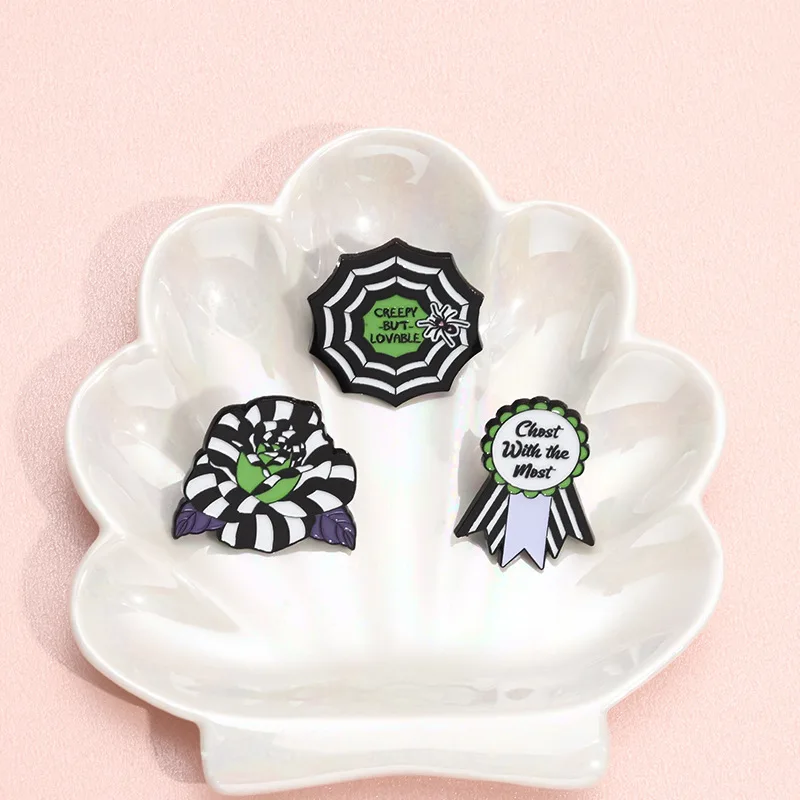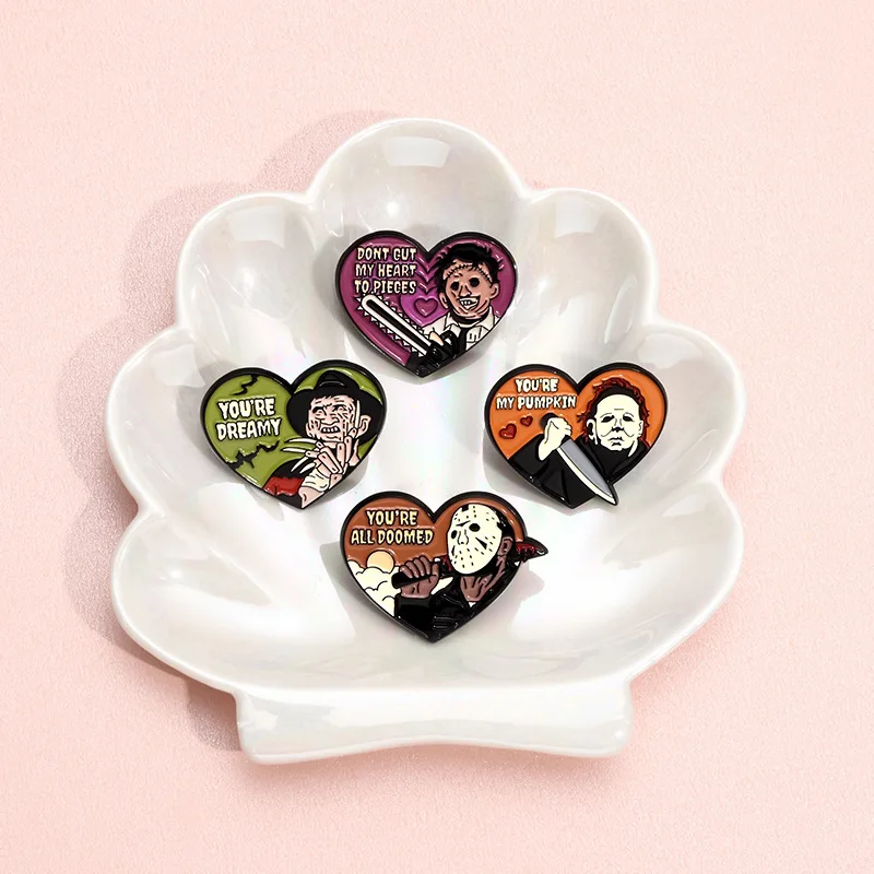 Straszne Serce Para Broszka TV Dynia Sierpa Pająk Sieć Ciasto Maska Duch Człowiek Czaszka Odznaka Punk Halloween Szpilki Biżuteria Prezenty