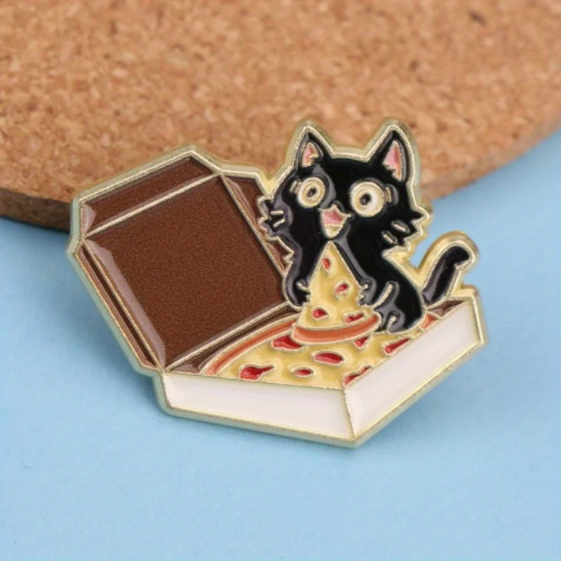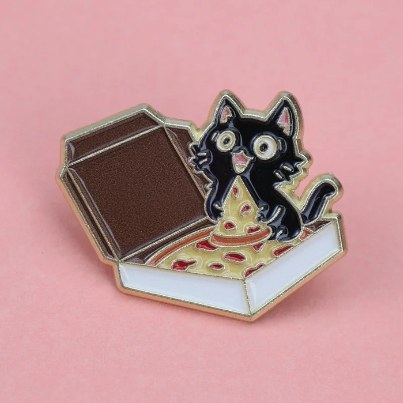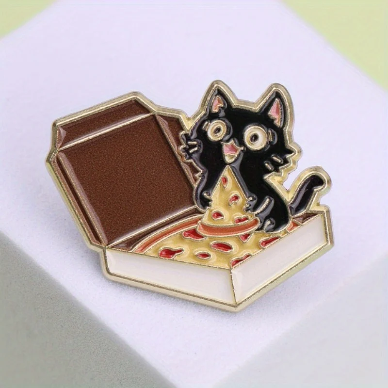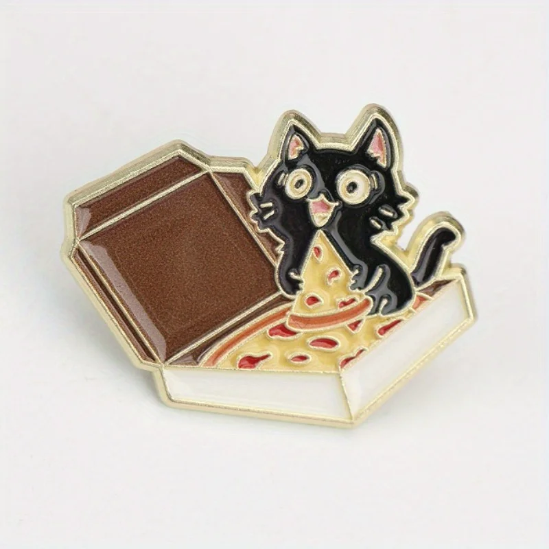 Urocza broszka z kotem i pizzą - kolekcjonerska odznaka ze stopu w stylu vintage z zabawnym kotkiem