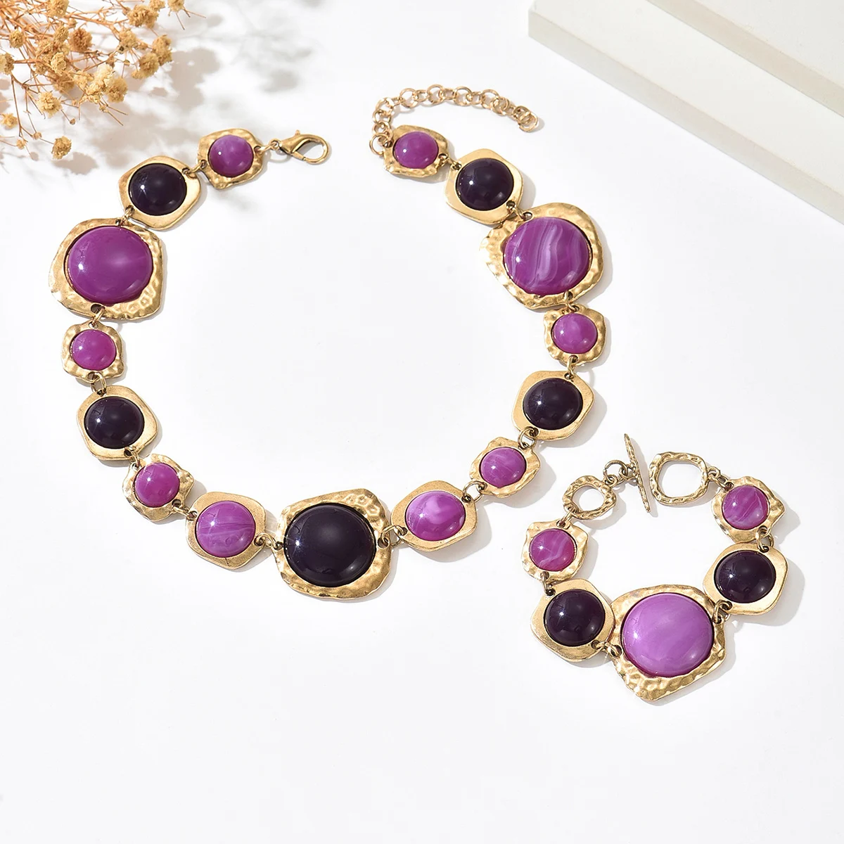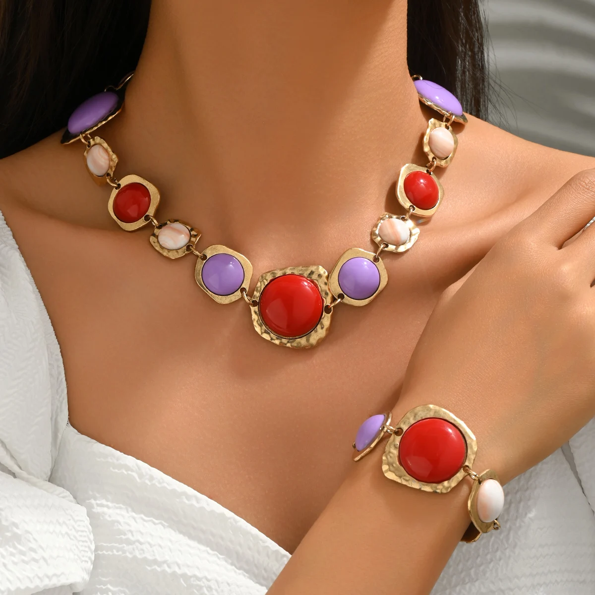 Vintage wielokolorowe nieregularne geometryczne bransoletki naszyjnik masywne przesadzone metalowe zestawy biżuterii moda artystyczna biżuteria na prezenty