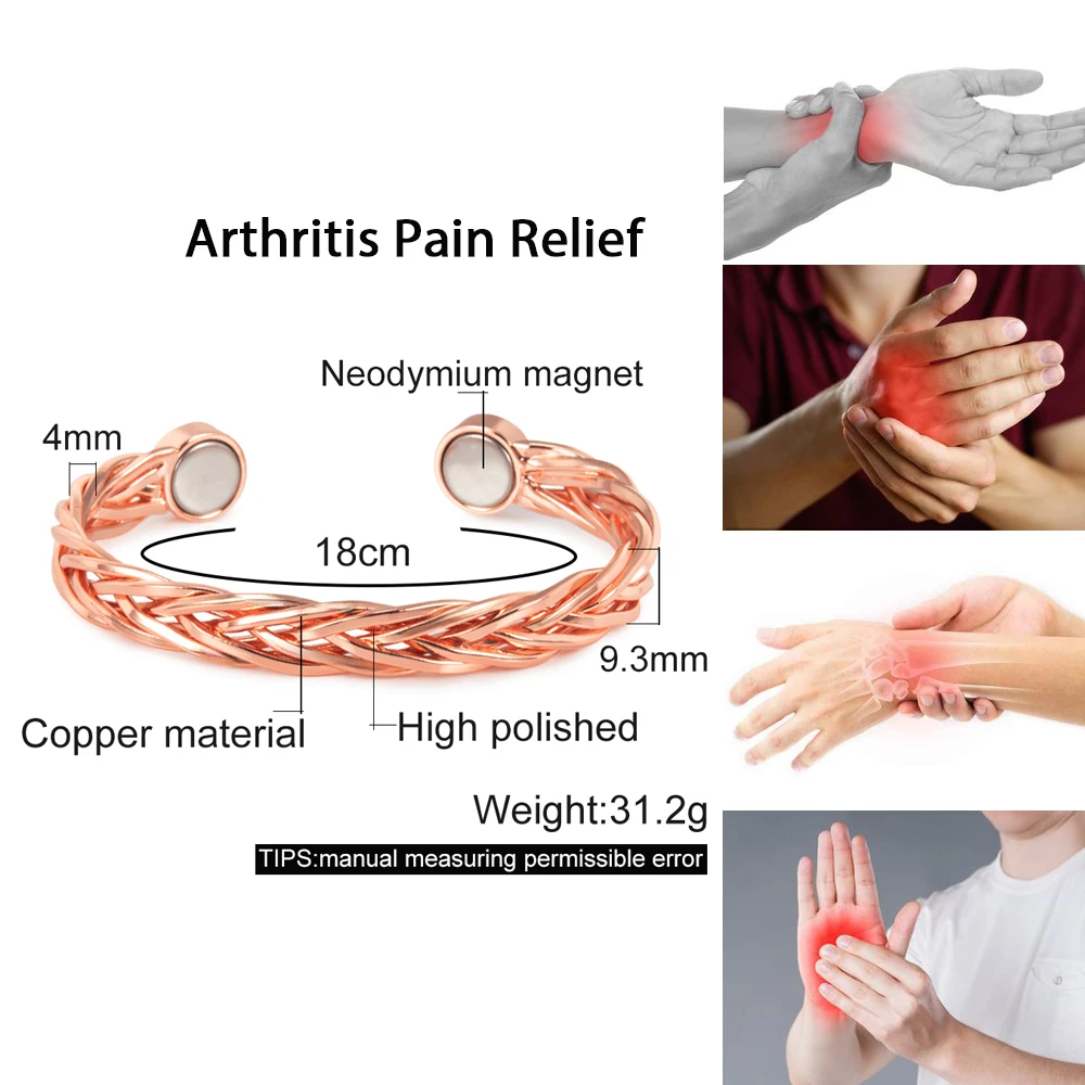 Vinterly bransoletki z czystej miedzi magnetyczna regulowana pleciona bransoletka do łagodzenia bólu zapalenie stawów róża zdrowie biżuteria energetyczna z możliwością zmiany rozmiaru