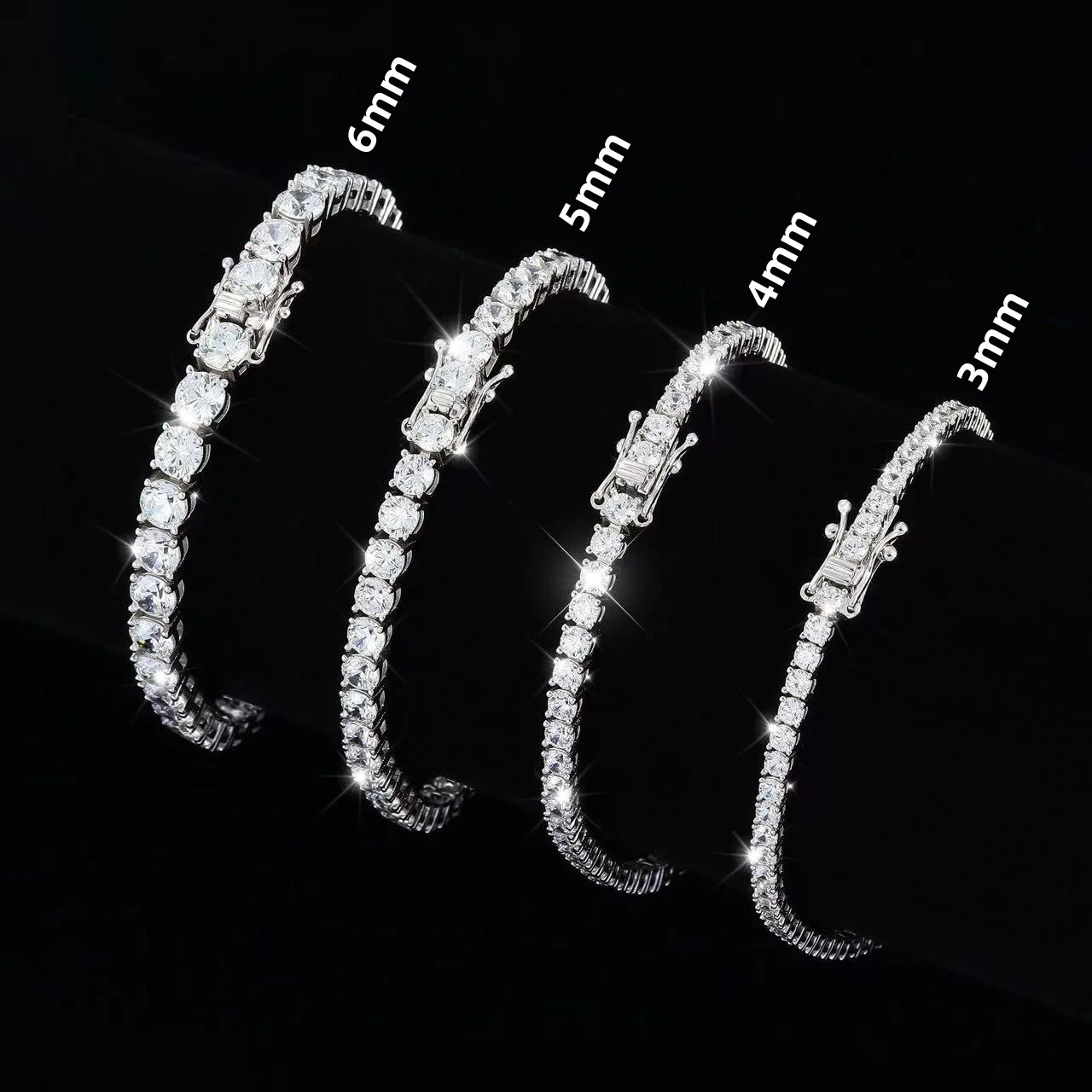 Bransoletka tenisowa ze 100% prawdziwego moissanitu, posrebrzana srebrem próby 925, platerowana 18-karatowym złotem, z certyfikatem GRA, dla kobiet i mężczyzn, błyszcząca biżuteria na imprezę.
