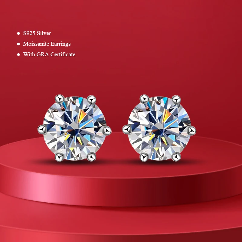 Kolczyki sztyfty z moissanitem GRA o szlifie D, 0,1 ct - 2 ct, srebro próby 925, pozłacane, biżuteria ślubna, imitacja diamentu laboratoryjnego.