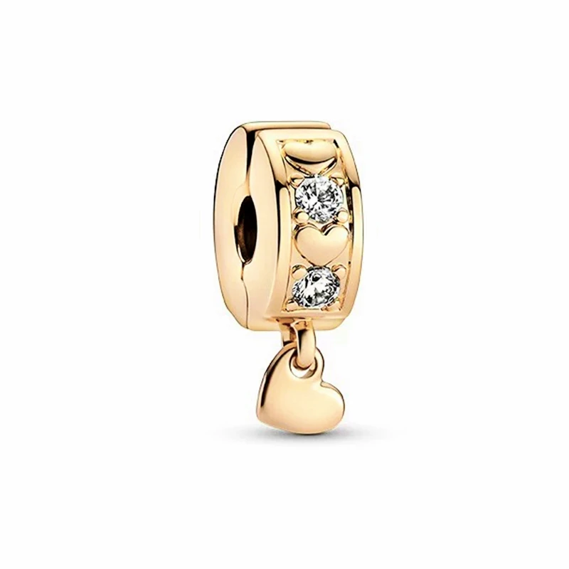 Nowy, błyszczący, złoty charms DIY z powłoką galwaniczną, w kształcie kwiatka, klips, łapka, serce, rodzina, pasuje do oryginalnej europejskiej srebrnej bransoletki, biżuteria, prezent.