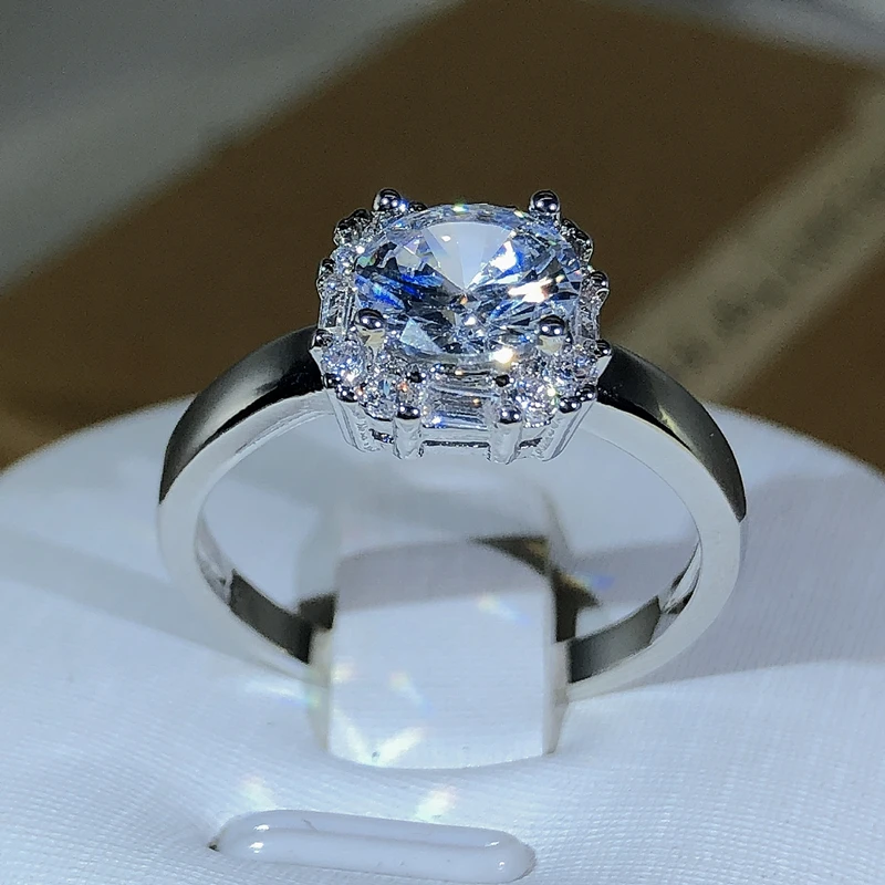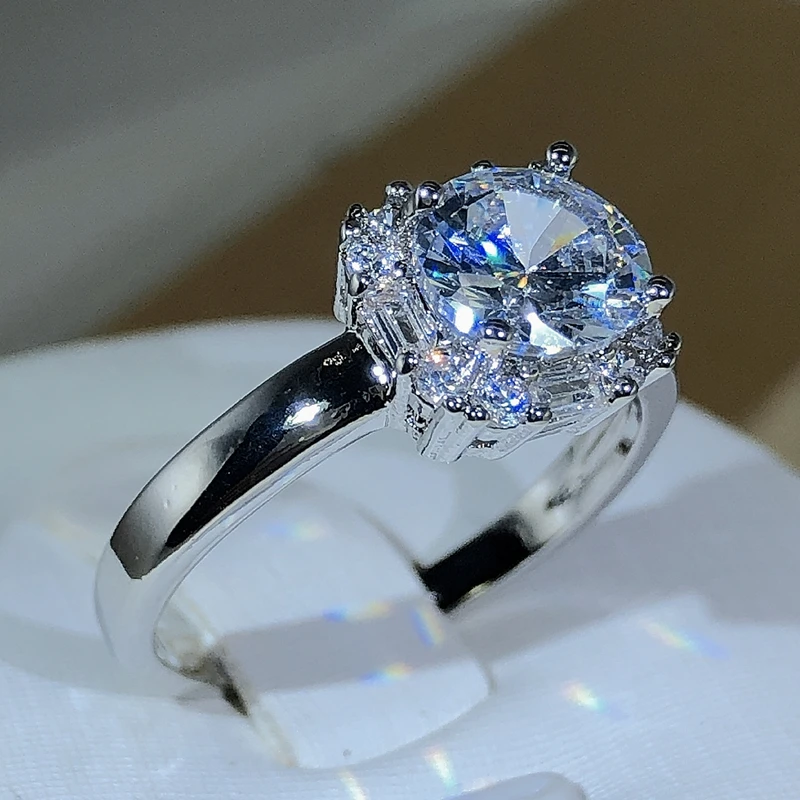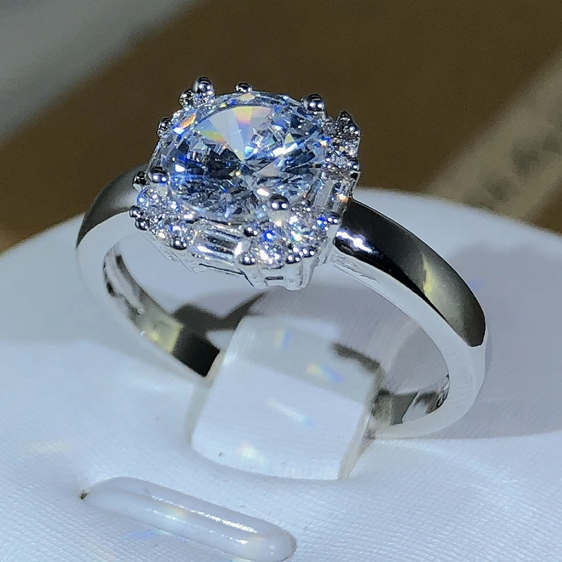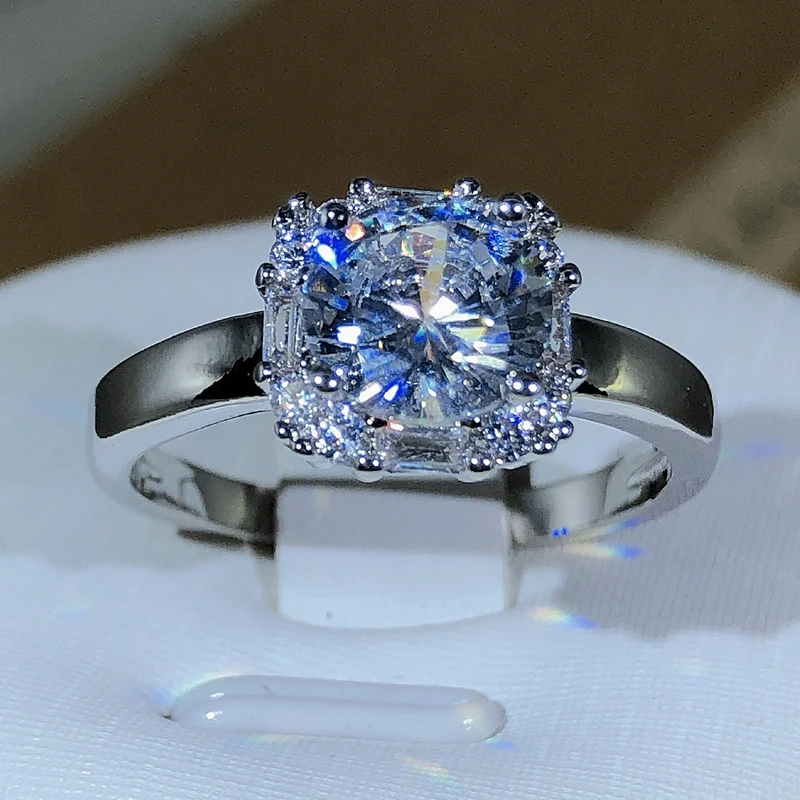 Oryginalne obrączki ślubne z czterema pazurami w kolorze srebra 925 dla kobiet Kwadratowe pierścionki zaręczynowe AAAAA z dużą białą cyrkonią Biżuteria