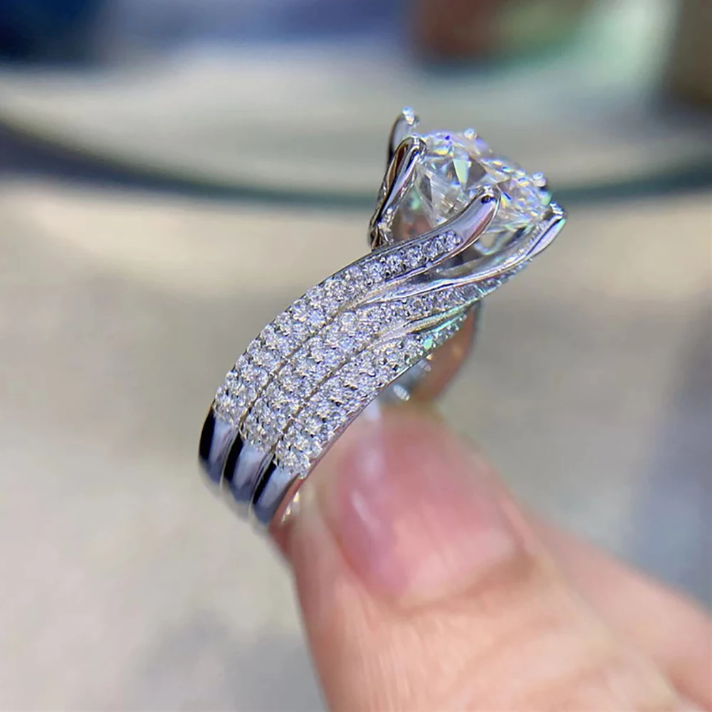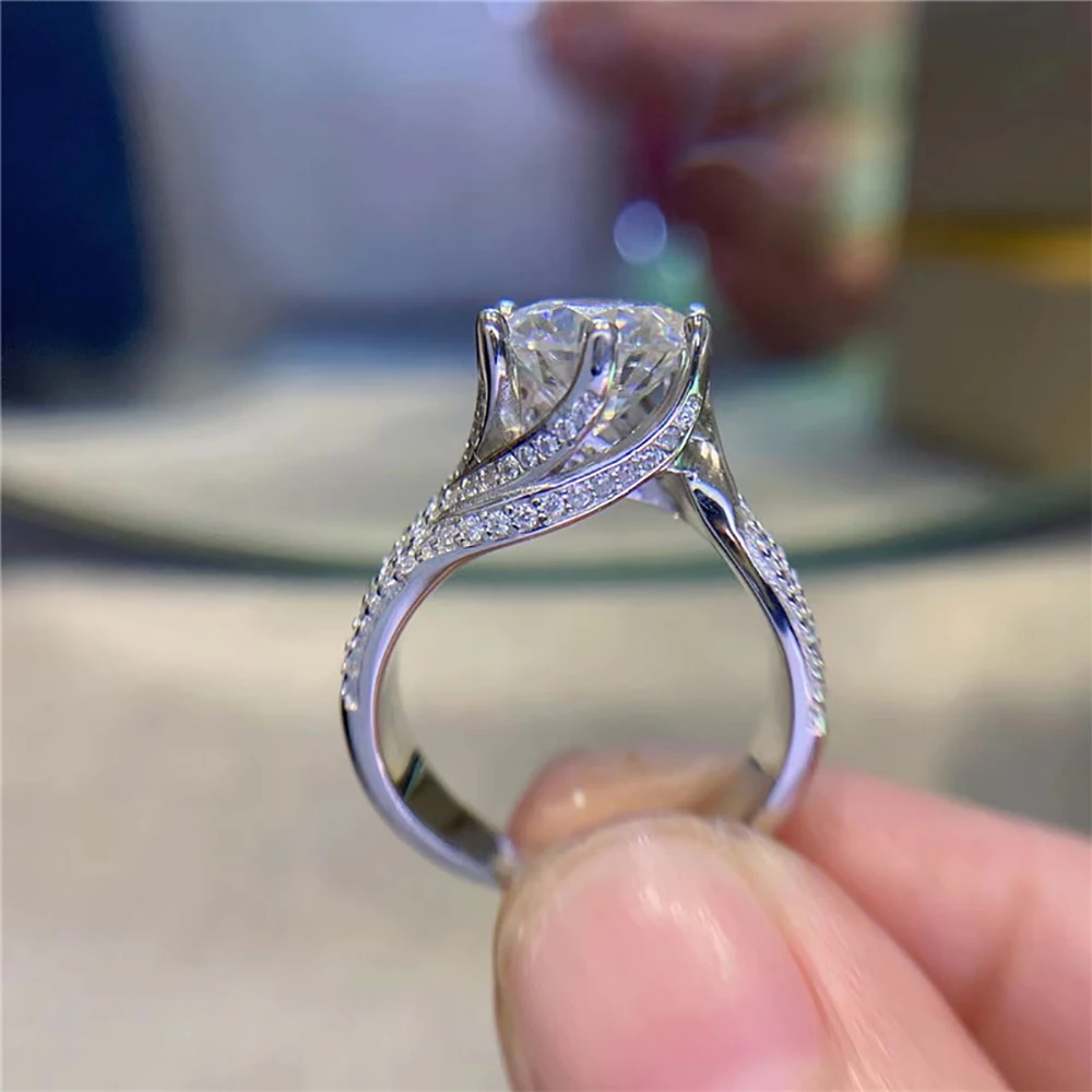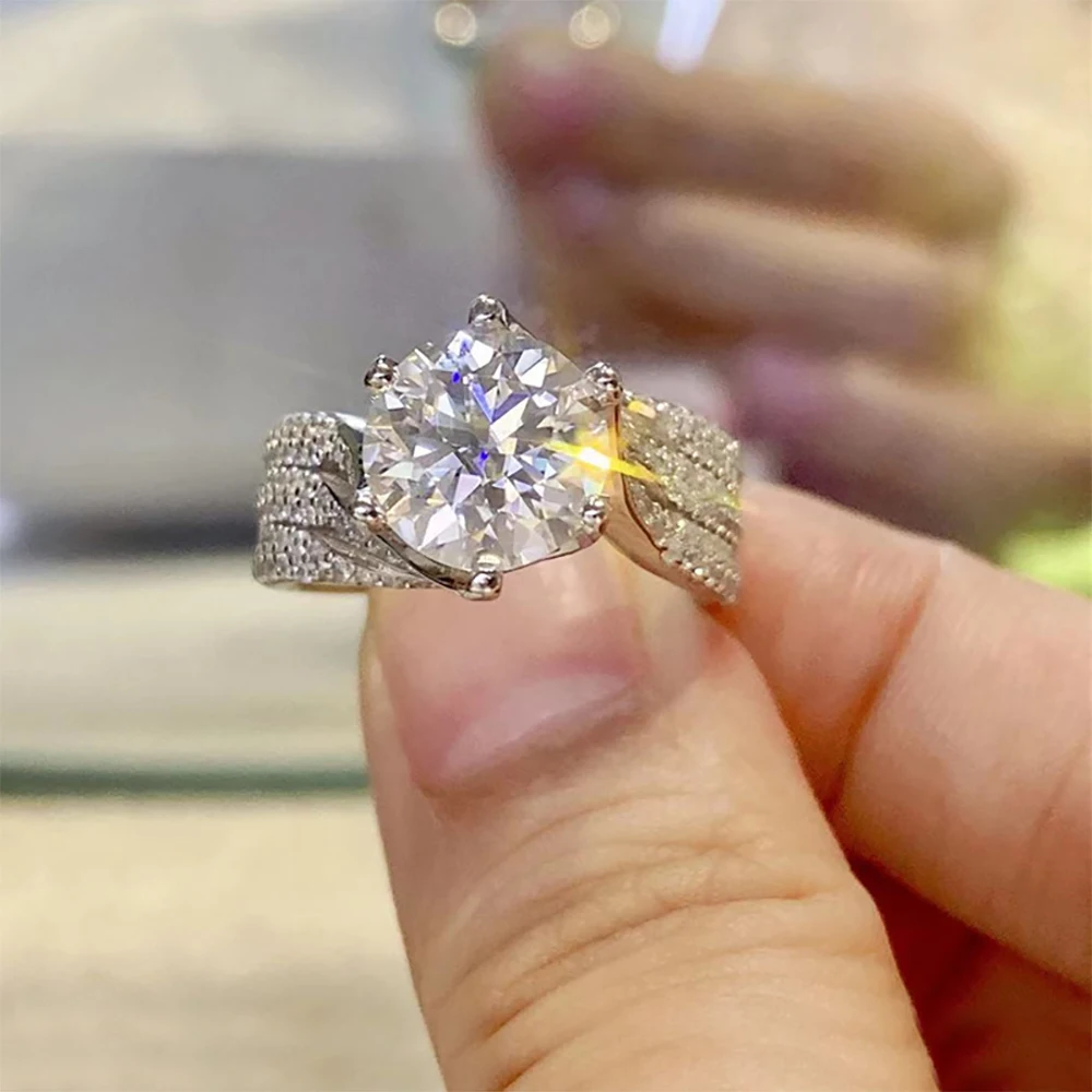 Pierścionki z moissanitem Serenity 5CT, kolor D, dla kobiet i mężczyzn, srebro próby S925, błyszczące obrączki ślubne, biżuteria wysokiej jakości, sprzedaż hurtowa.