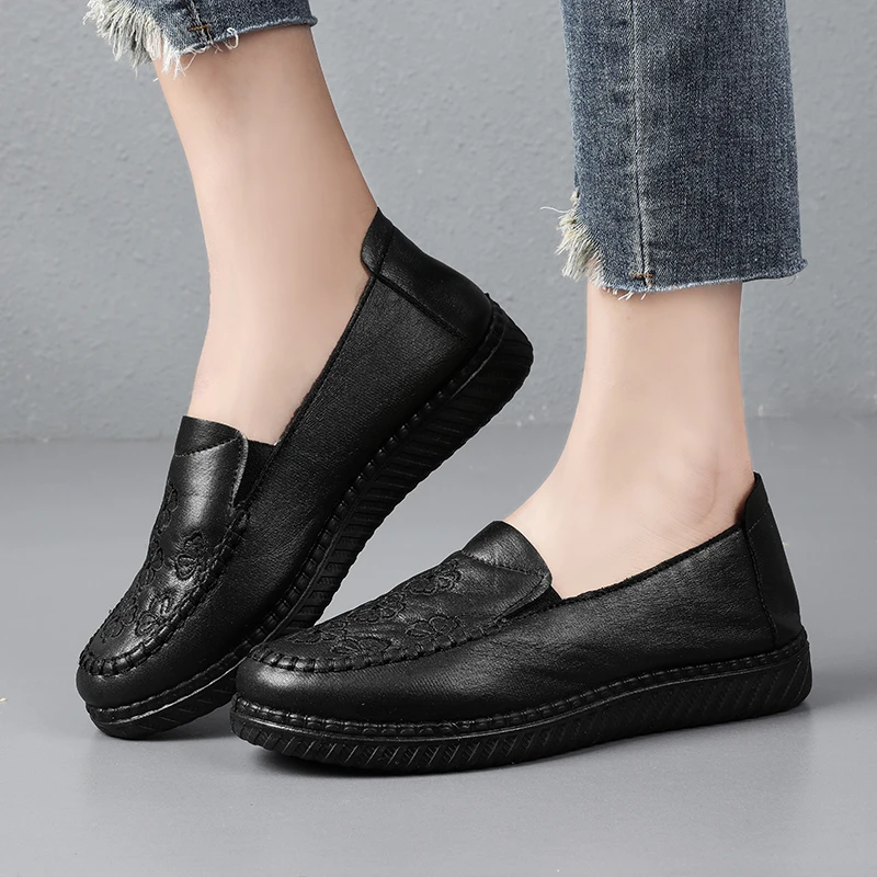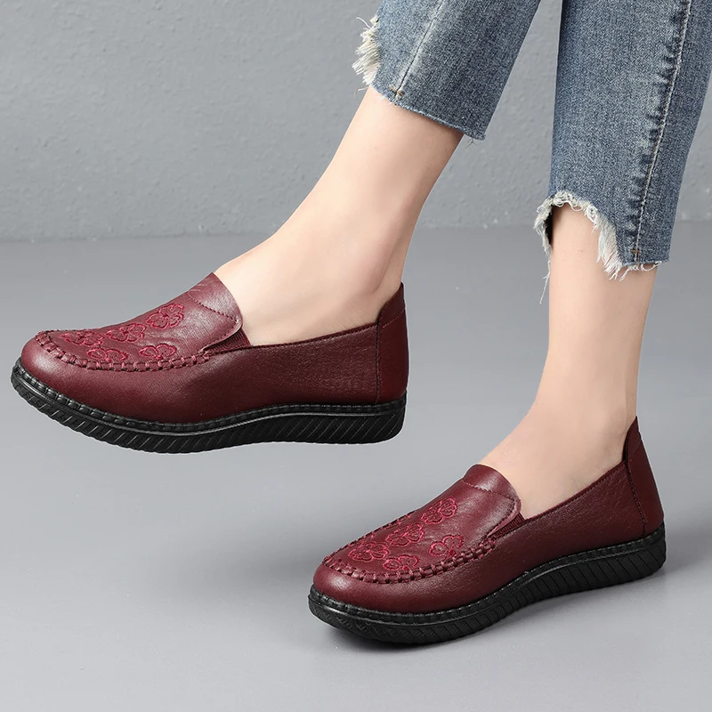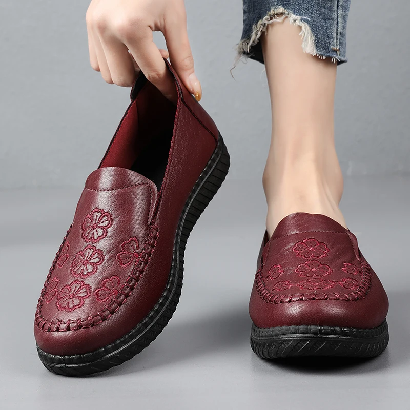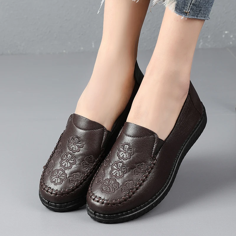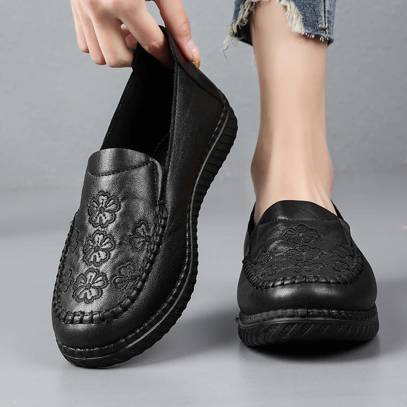 Damskie mokasyny w nowym stylu 2026, proste i klasyczne buty dla mam, damskie skórzane buty na płaskiej podeszwie, antypoślizgowe i wygodne, wykonane z miękkich materiałów.