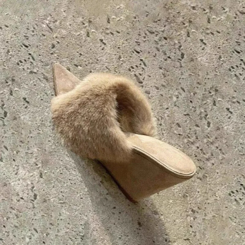 Klapki na koturnie Jesień Nowe Szpiczaste Odkryte Palce Pluszowe Antypoślizgowe Odporne na Ścieranie Wysokie Obcasy Japonki