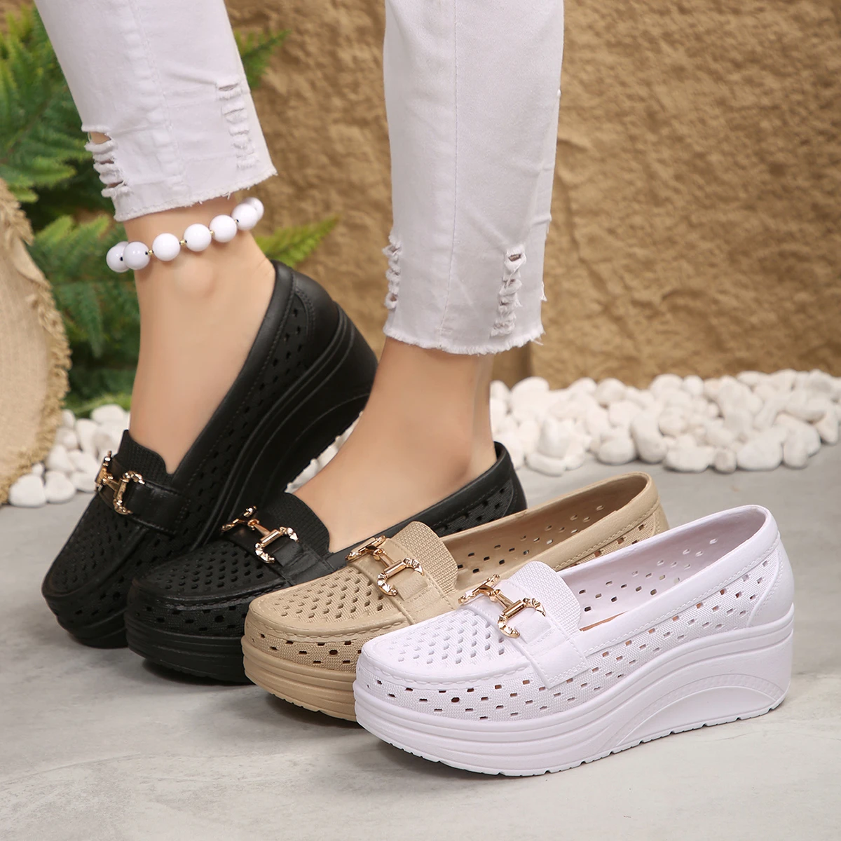 Wiosenno-letnie, popularne, wygodne buty sportowe na grubej podeszwie, antypoślizgowe, modne, nowe, oddychające, seksowne buty na koturnie do pracy dla kobiet.
