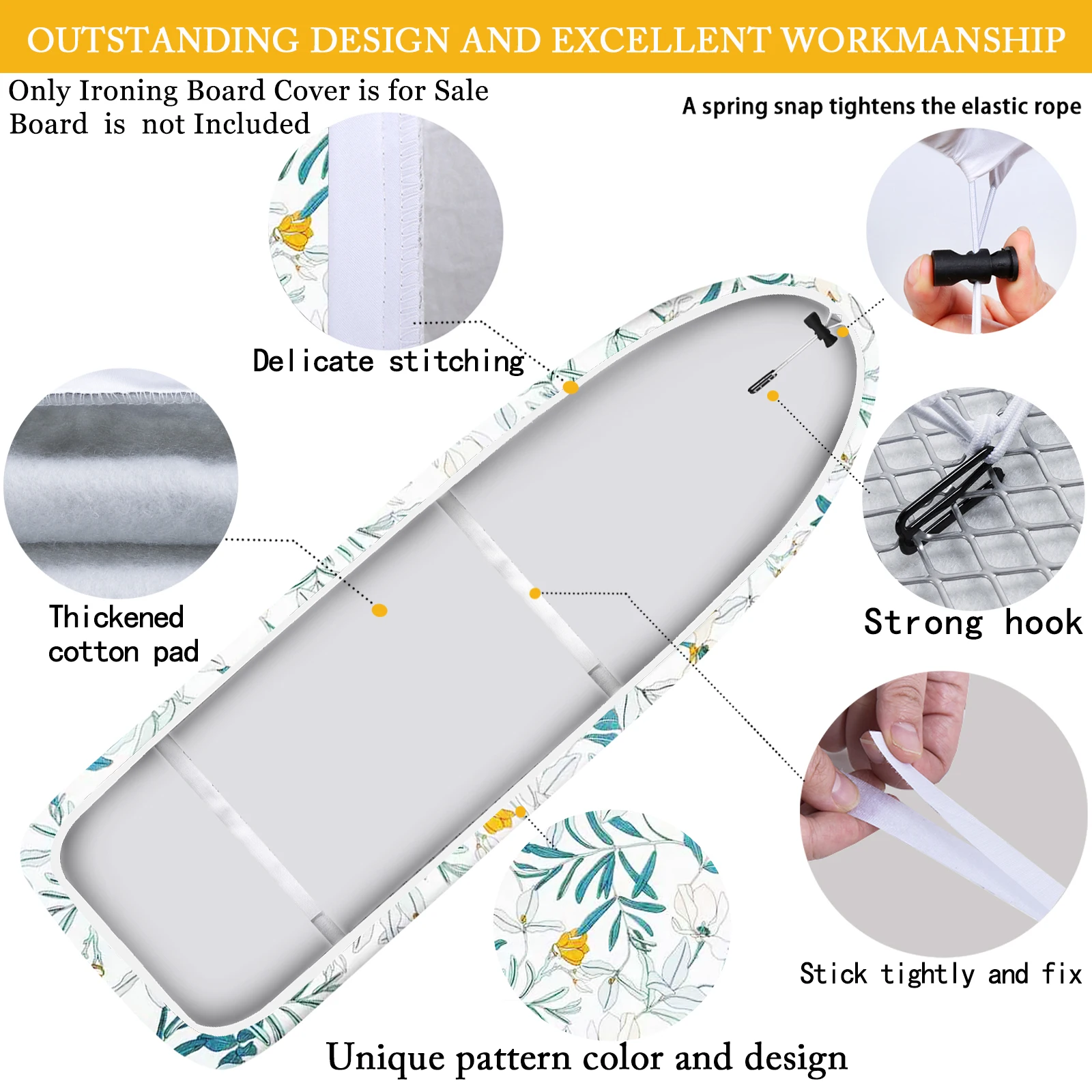 Pokrowiec na deskę do prasowania 120x40, 130x50, 140x50, pełnowymiarowy, z wykończeniem chroniącym przed przypaleniami, wytrzymały, gruby poliester, akcesorium do pralni