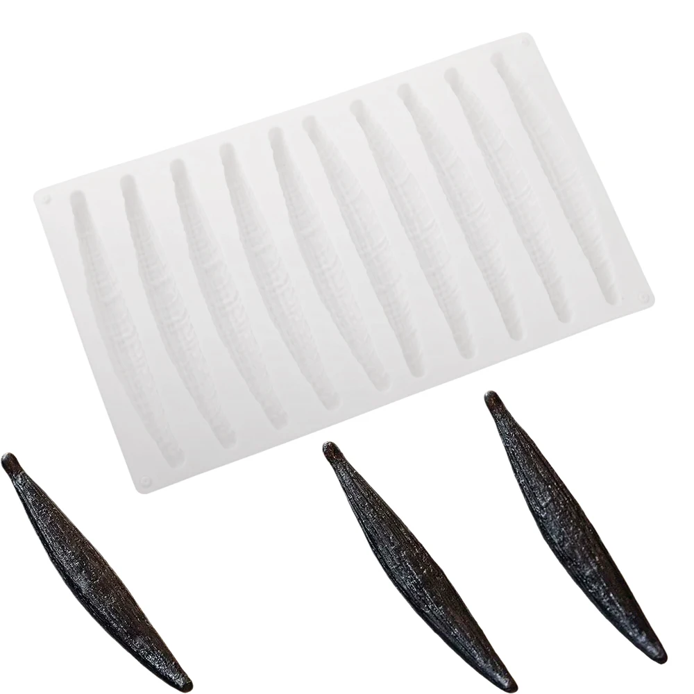 Formy silikonowe do czekolady z 10 przegródkami, wzór waniliowy, białe, czarne lub khaki, silikonowe formy do ciast, akcesoria kuchenne do pieczenia deserów.