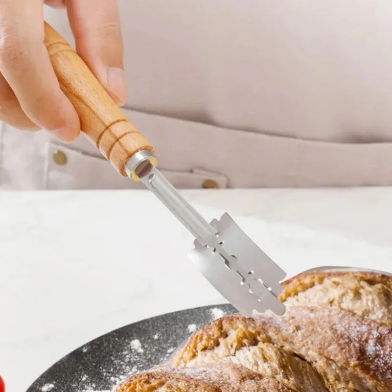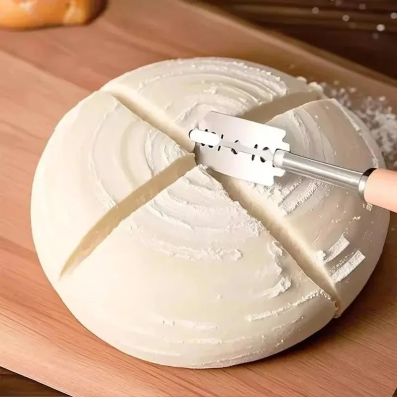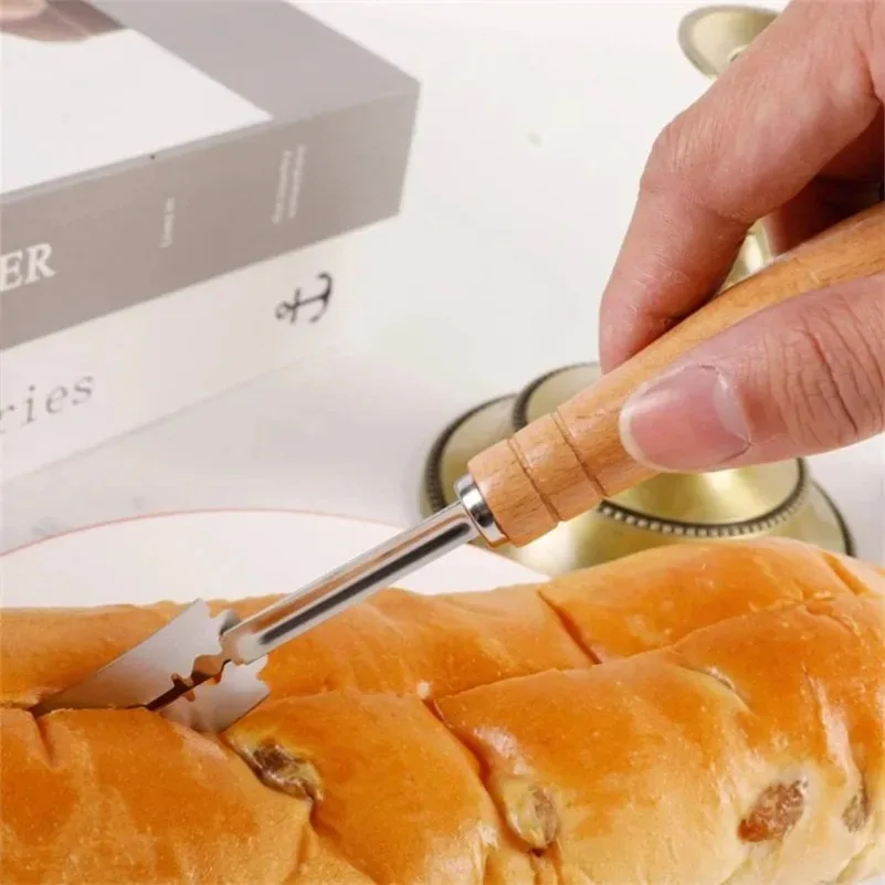 Nóż do chleba ze stali nierdzewnej z 5 wymiennymi ostrzami Praktyczny zakrzywiony nóż do chleba Nóż do ciast Narzędzie do pieczenia do ciast i pizzy